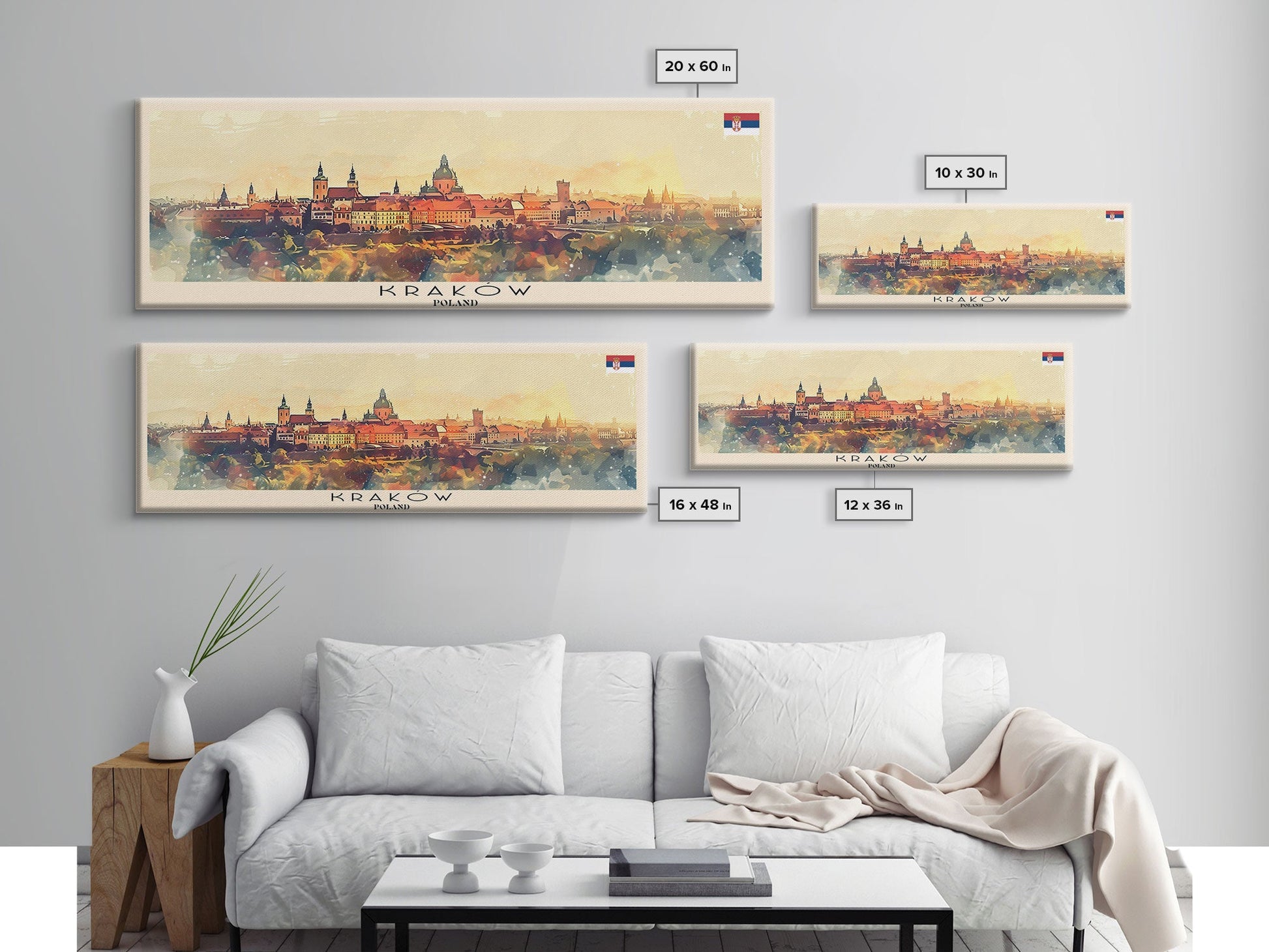 Krakow Poland Travel Art, City Art, Framed Canvas Print or Metal Wall Art, Europe Travel Poster, Panoramic Wall Art, Extra Wide Wall Art