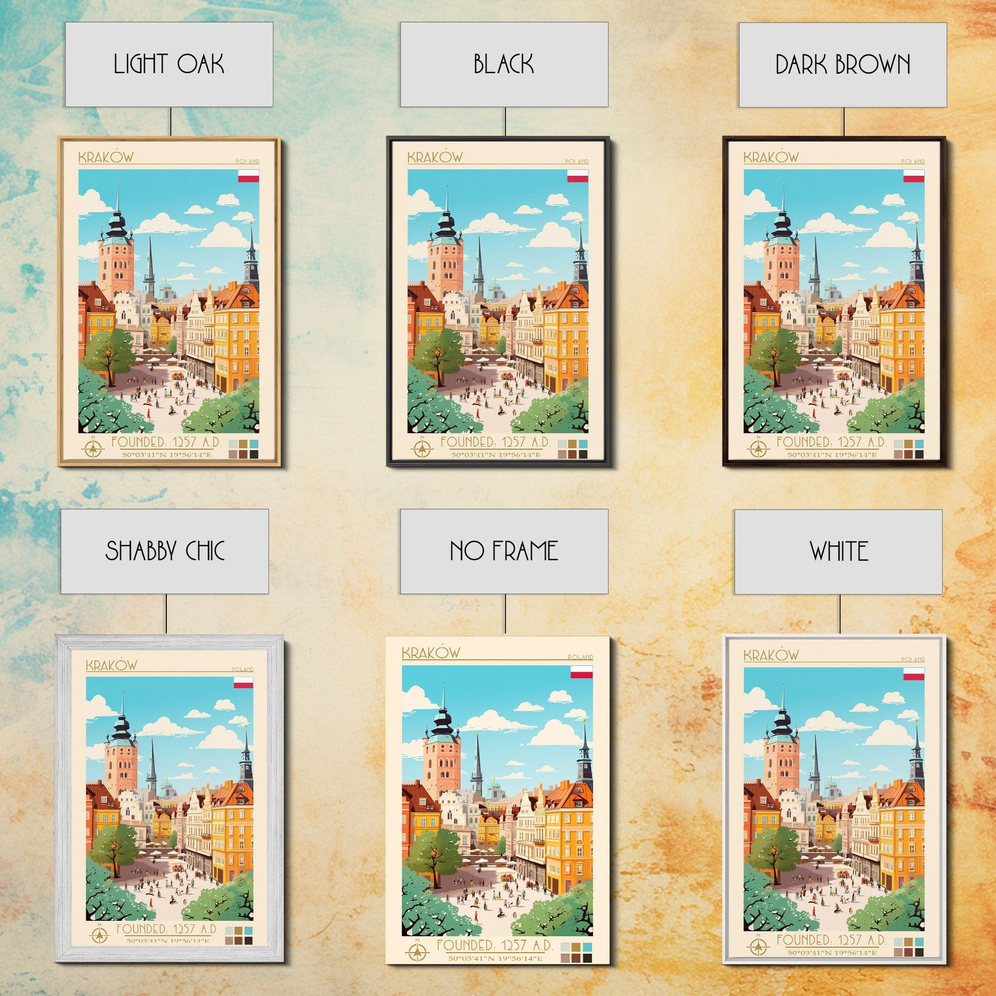 Kraków Poland Travel Poster Framed Canvas Print, Midcentury Modern Art, Pop Art Wall Decor, Home Decor, Vacation Gift, Bedroom Art
