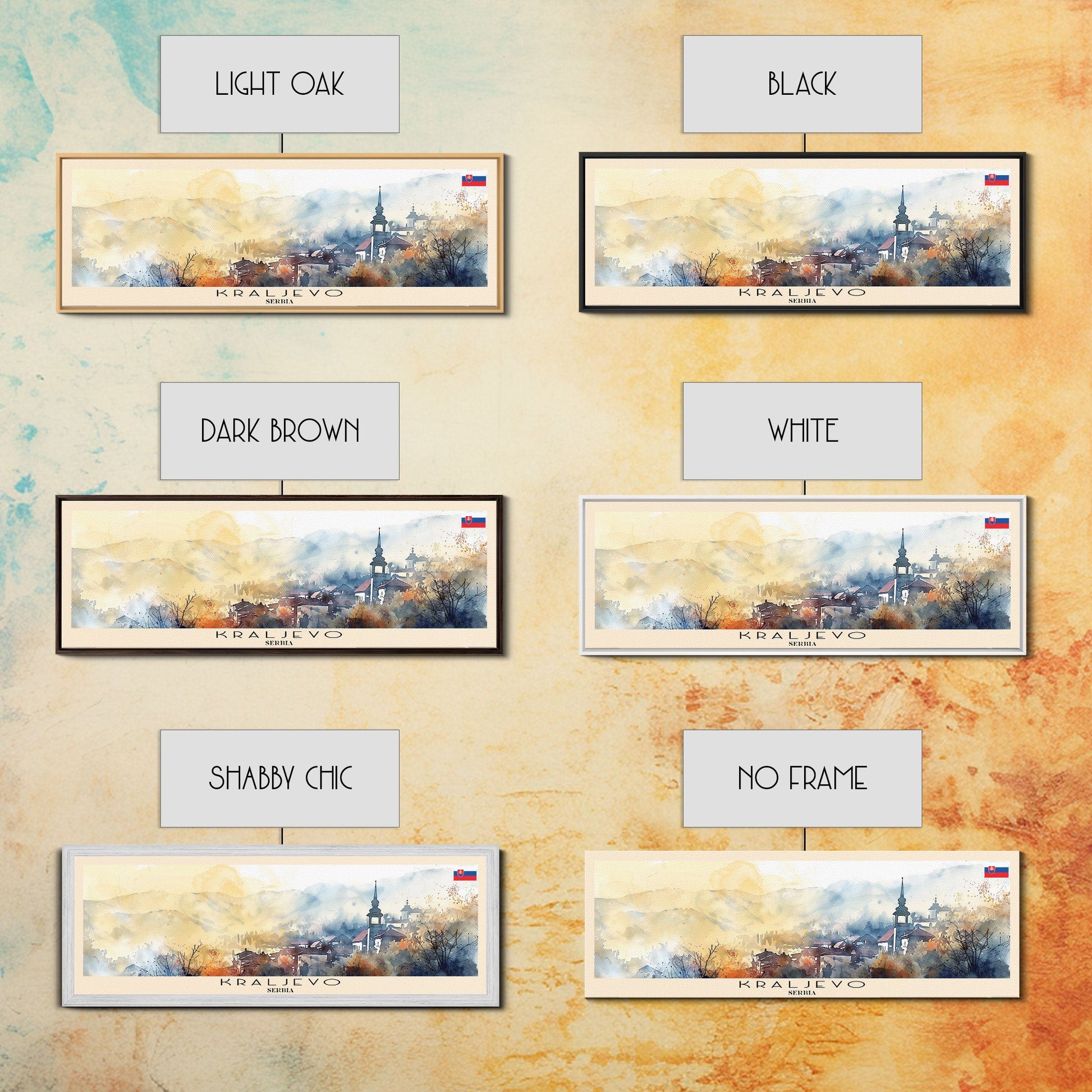 Kraljevo Serbia Panoramic Travel Poster, Framed Canvas Print or Metal Wall Art, Travel Art, Home Decor, Panoramic Painting, Midcentury Art