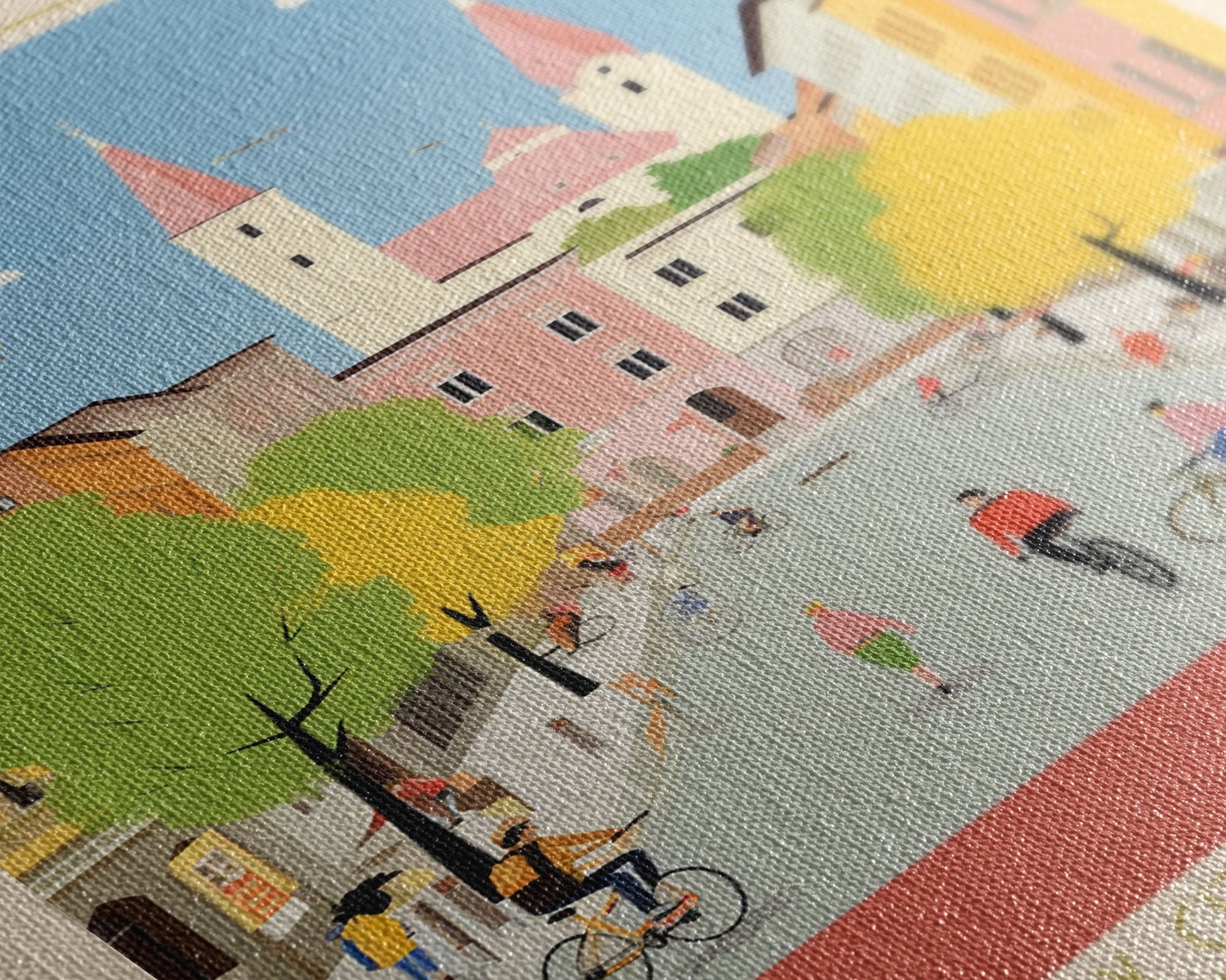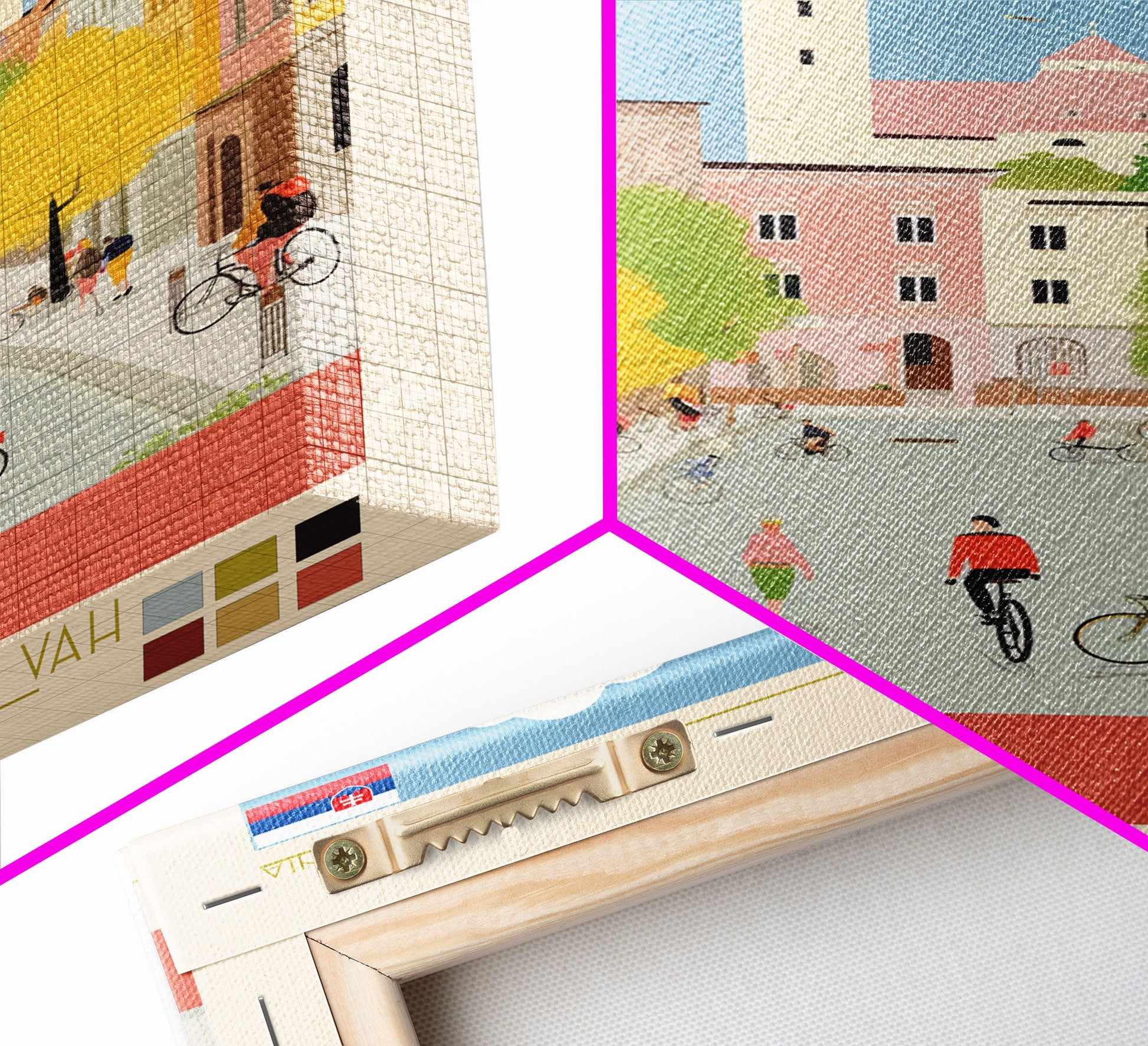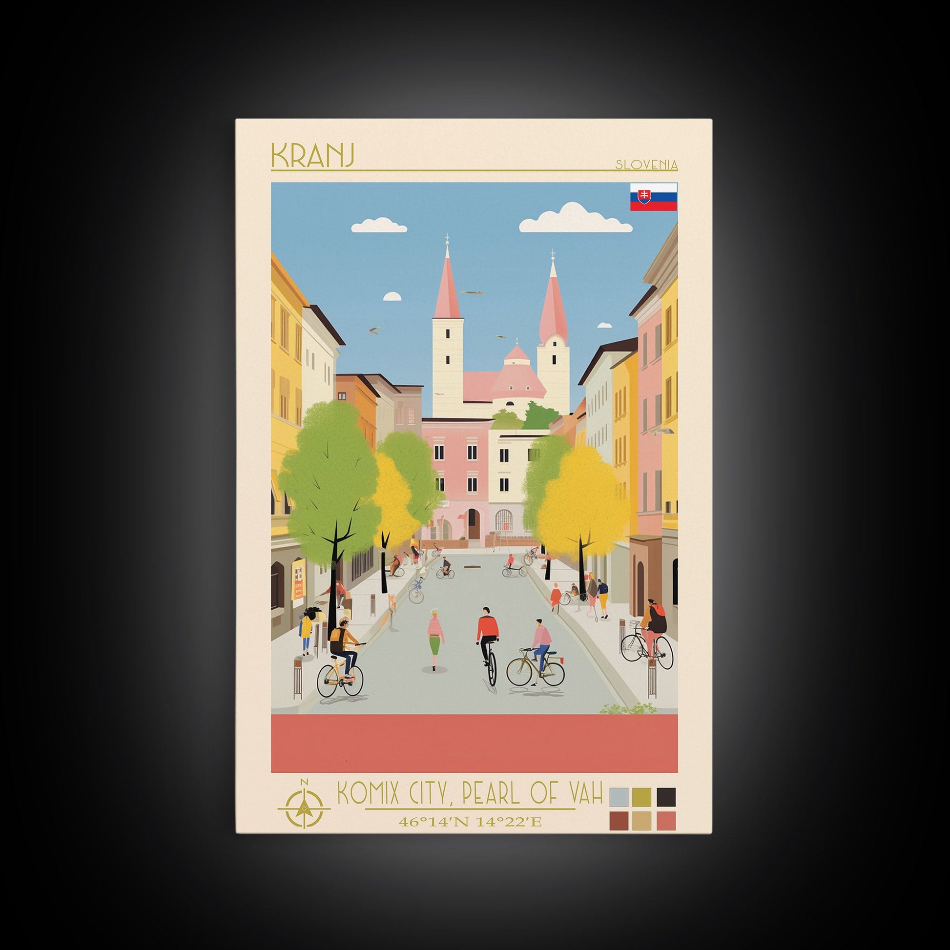 Kranj Slovenia Travel Poster Framed Canvas Print, Midcentury Modern Art, Pop Art Wall Decor, Scenic Wall Art, Bedroom Decoration