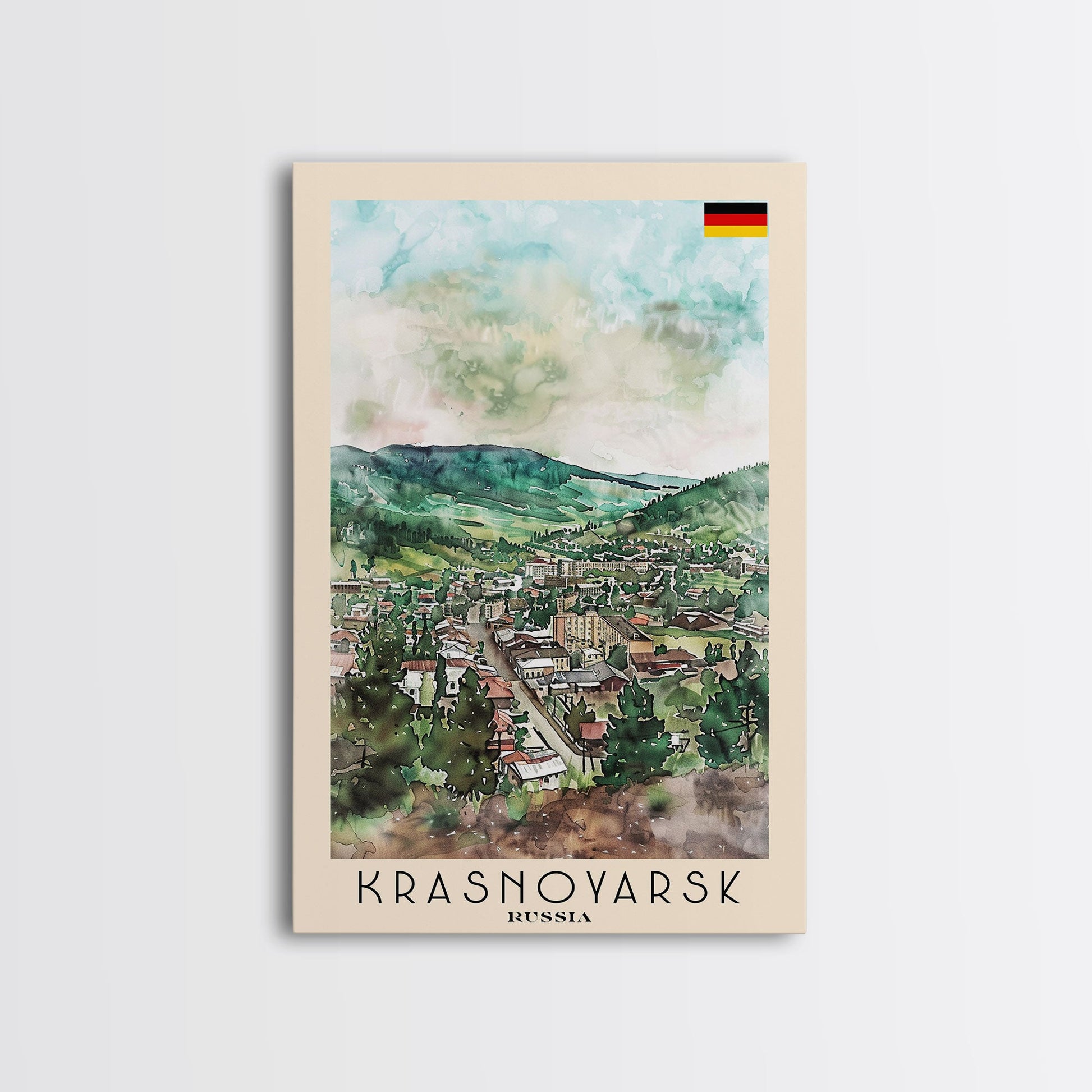 Krasnoyarsk Russia Travel Poster Framed Canvas Print, Watercolor Cityscape, Home Decor, Wall Art, Scenic Painting, Travel Print, Artistic Gift