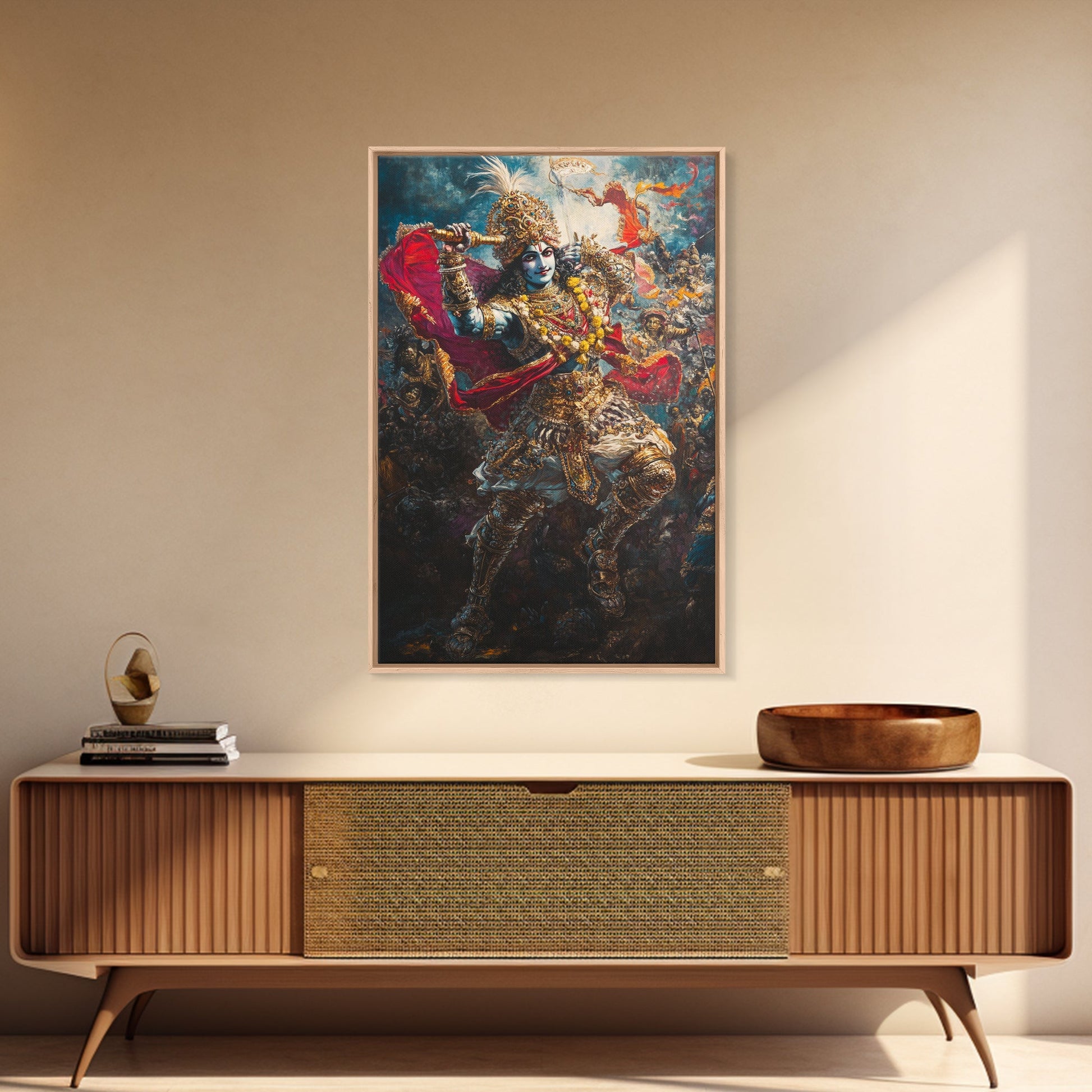 Krishna Wall Art, Radha Krishna Framed Canvas Print, Indian Hindu Wall Art