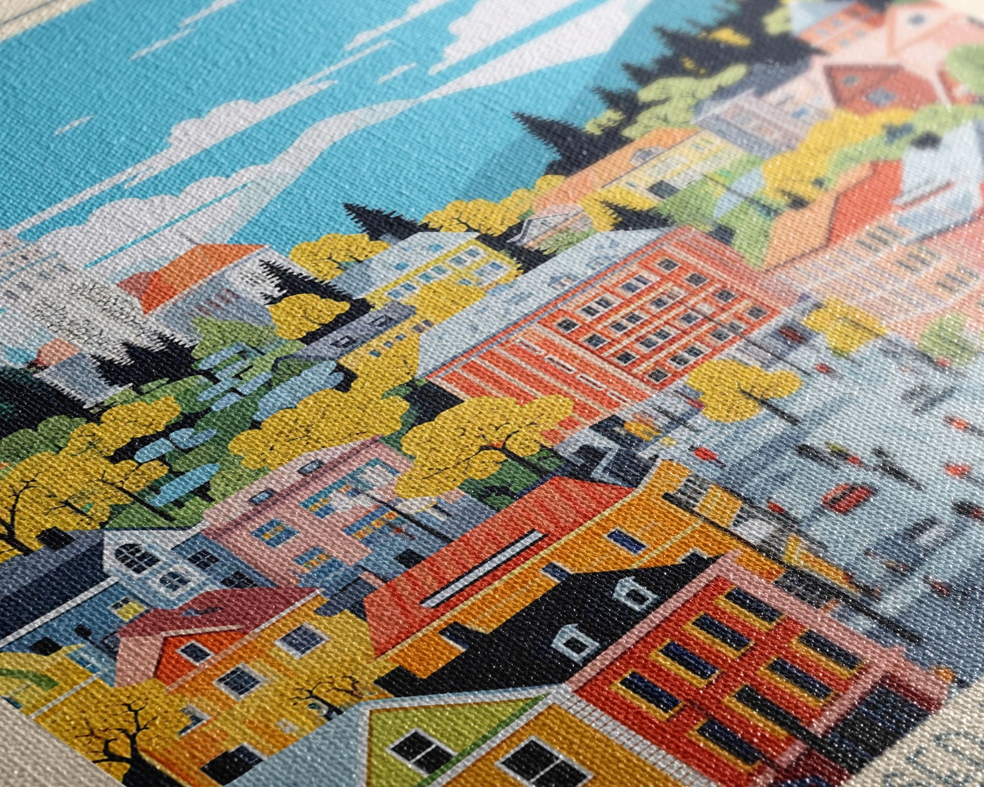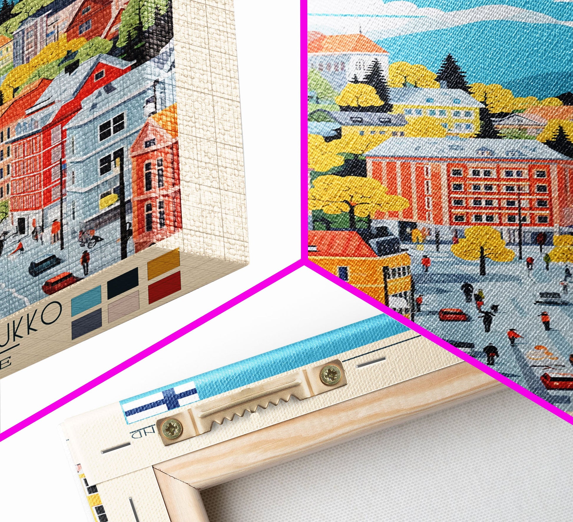 Kuopio Finland Travel Poster Framed Canvas Print, Midcentury Modern Art, Pop Art Wall Decor, Home Decor, Vacation Gift, Bedroom Art