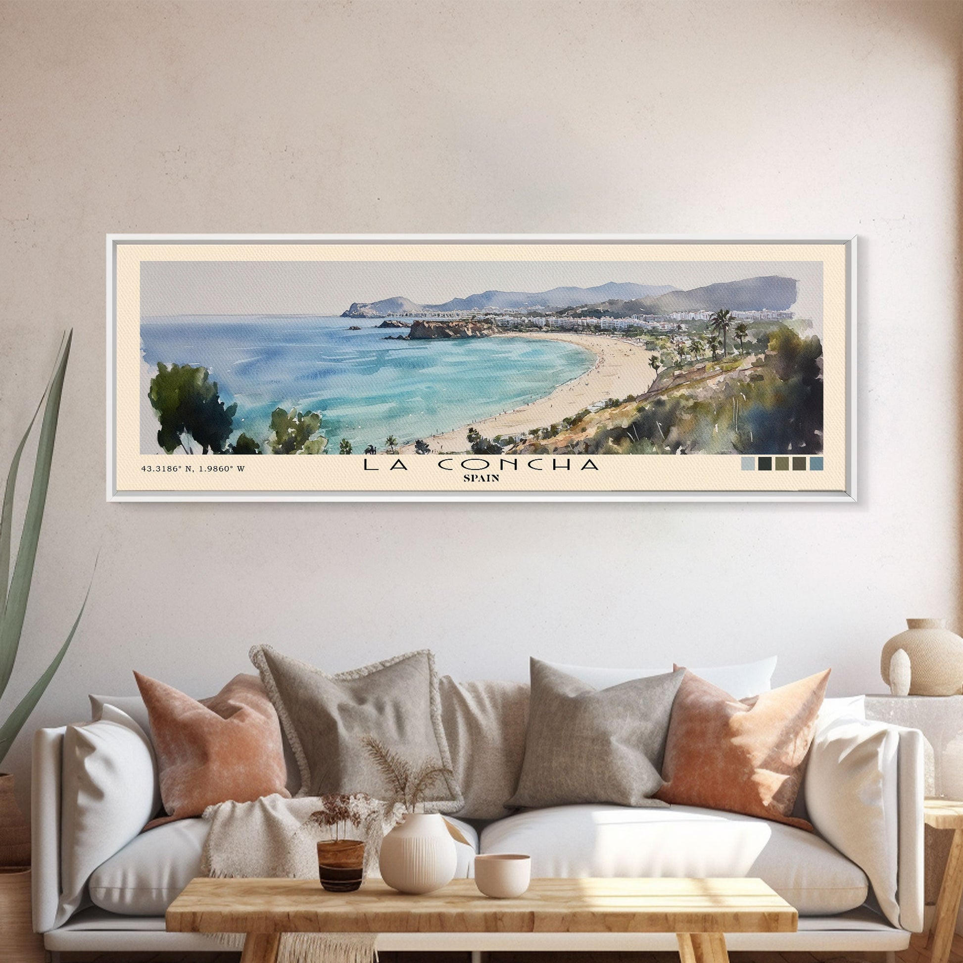 La Concha, Spain Watercolor Print, Vacation Gift, Spain Wall Art, Beach Painting, Beach Decor, Large Wall Art, Wood Frame Art