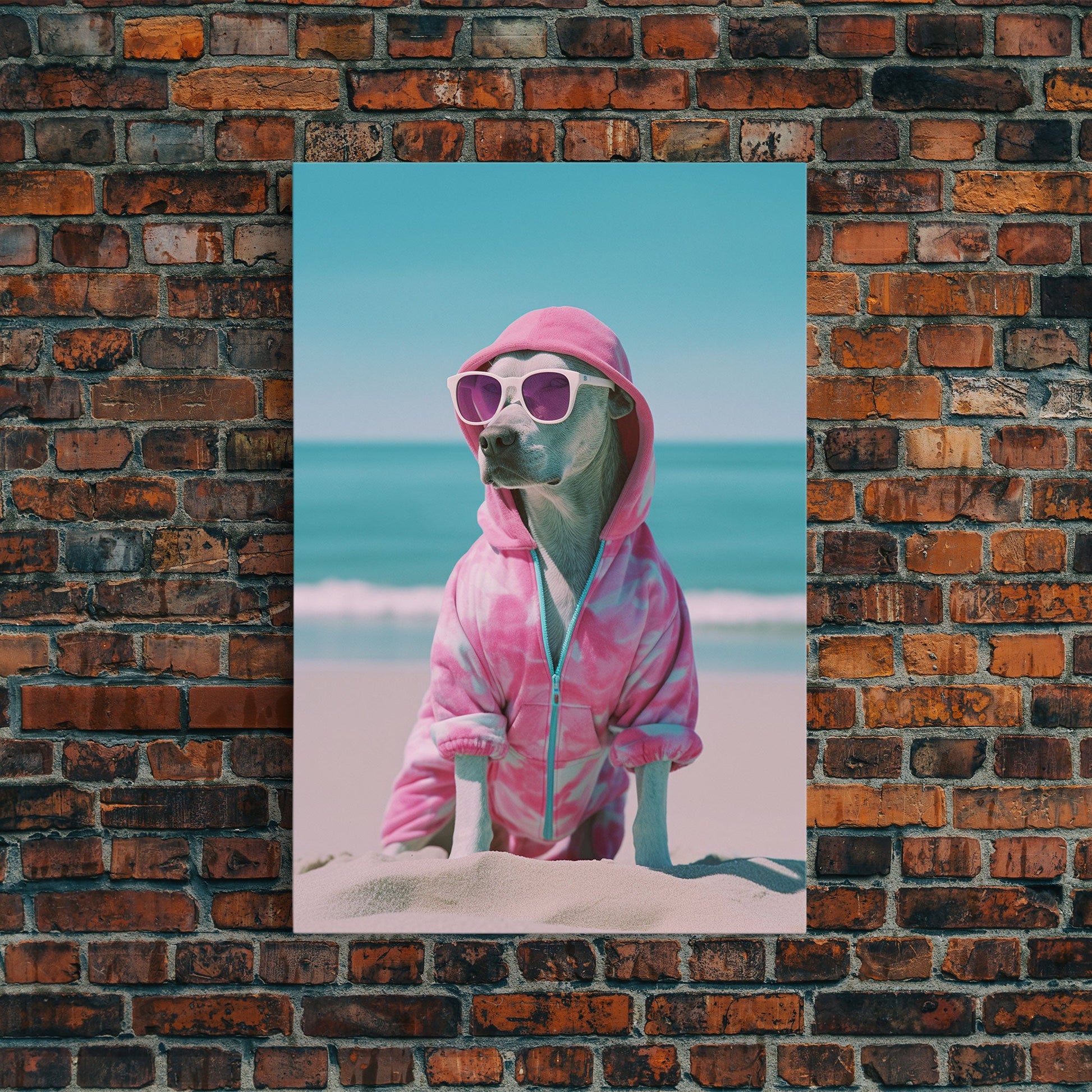 Labrador In Pink Hoodie Sunglasses Wall Print, Beach Art, Dog Print, Dog Portrait, Framed Wall Art, Framed Canvas, Wall Print, Wall Canvas