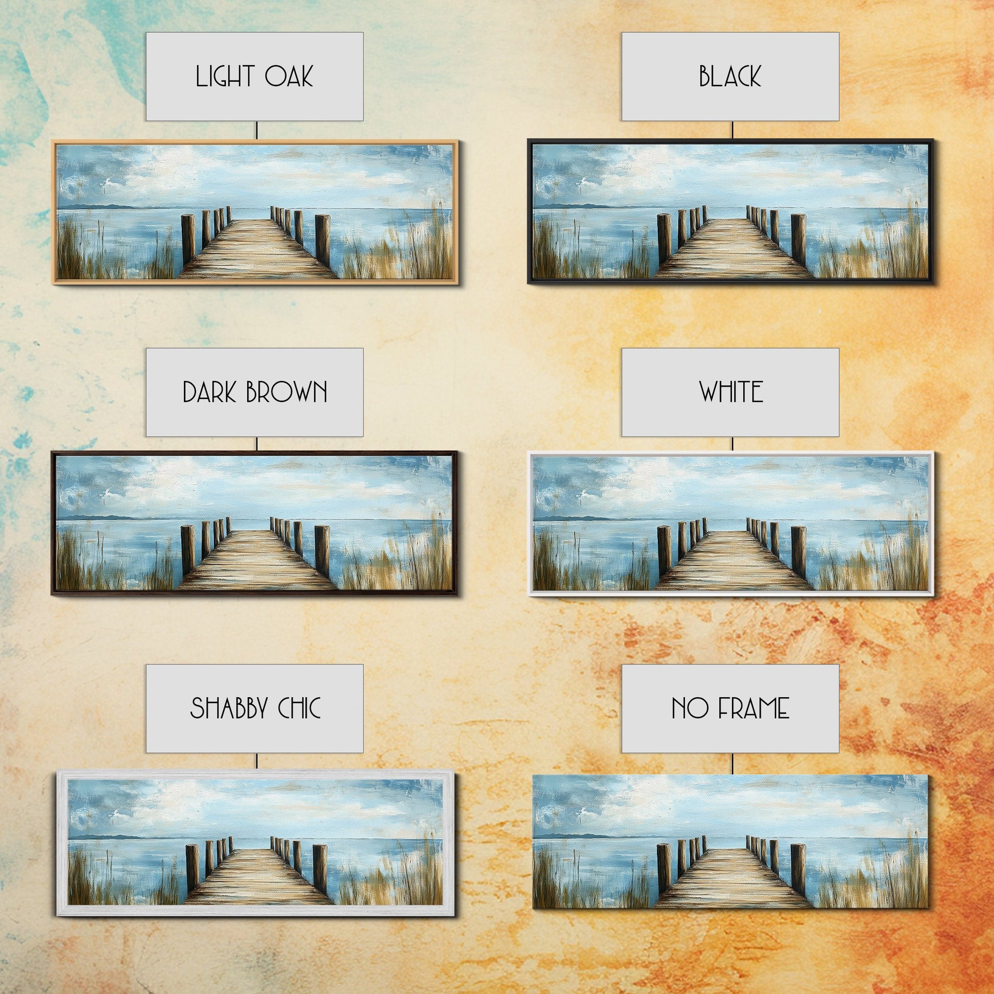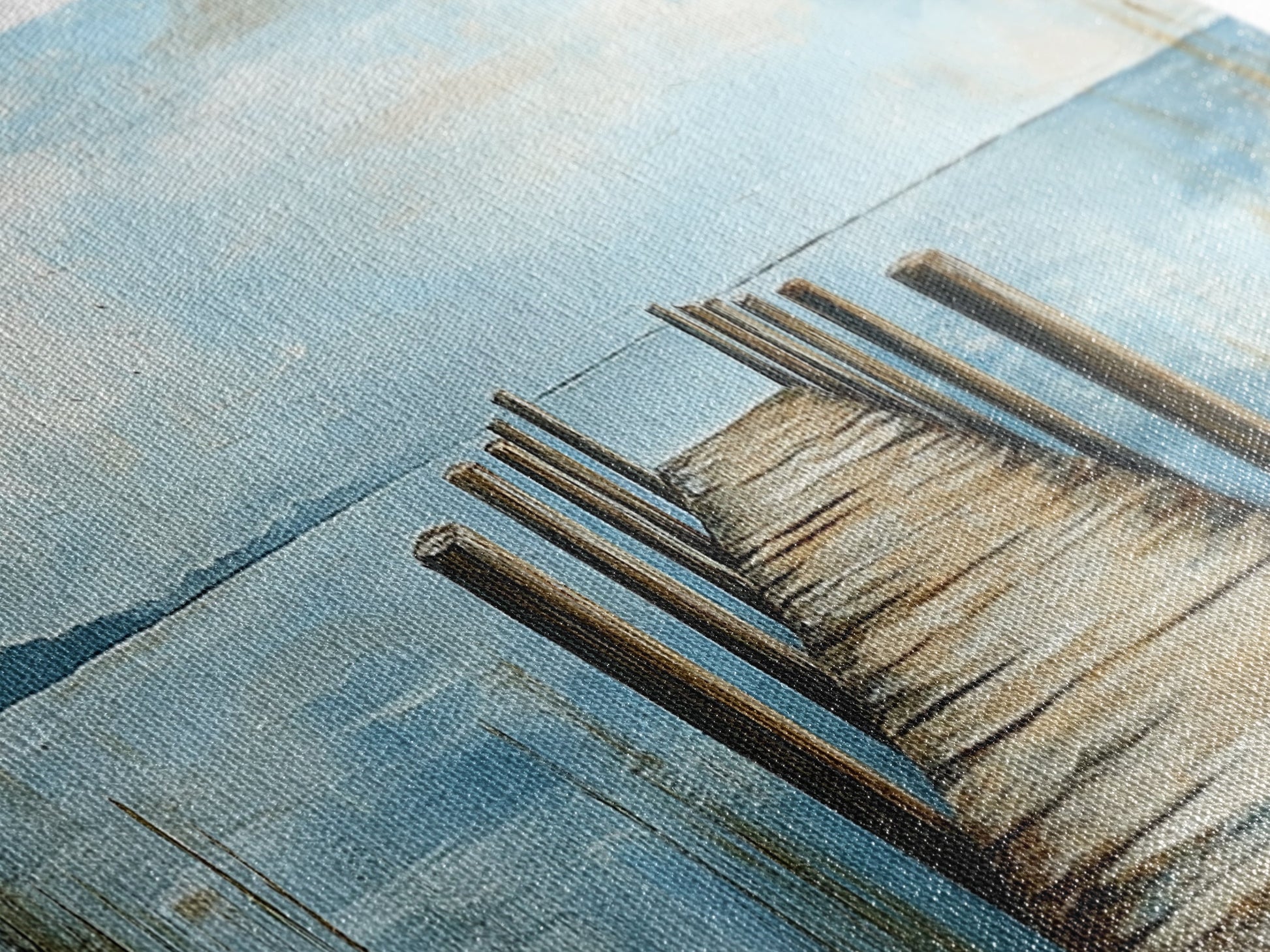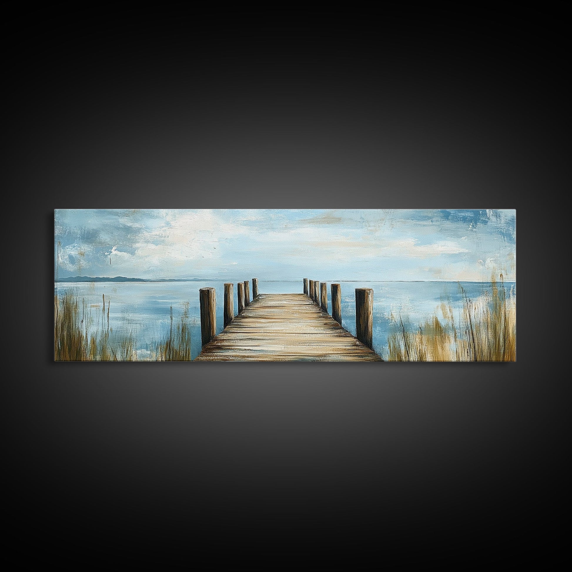 Lake Dock, Peaceful Water Scene, Serene Landscape, Rustic Nature Painting, Minimalist Home Decor, Canvas Print, Framed Canvas Print