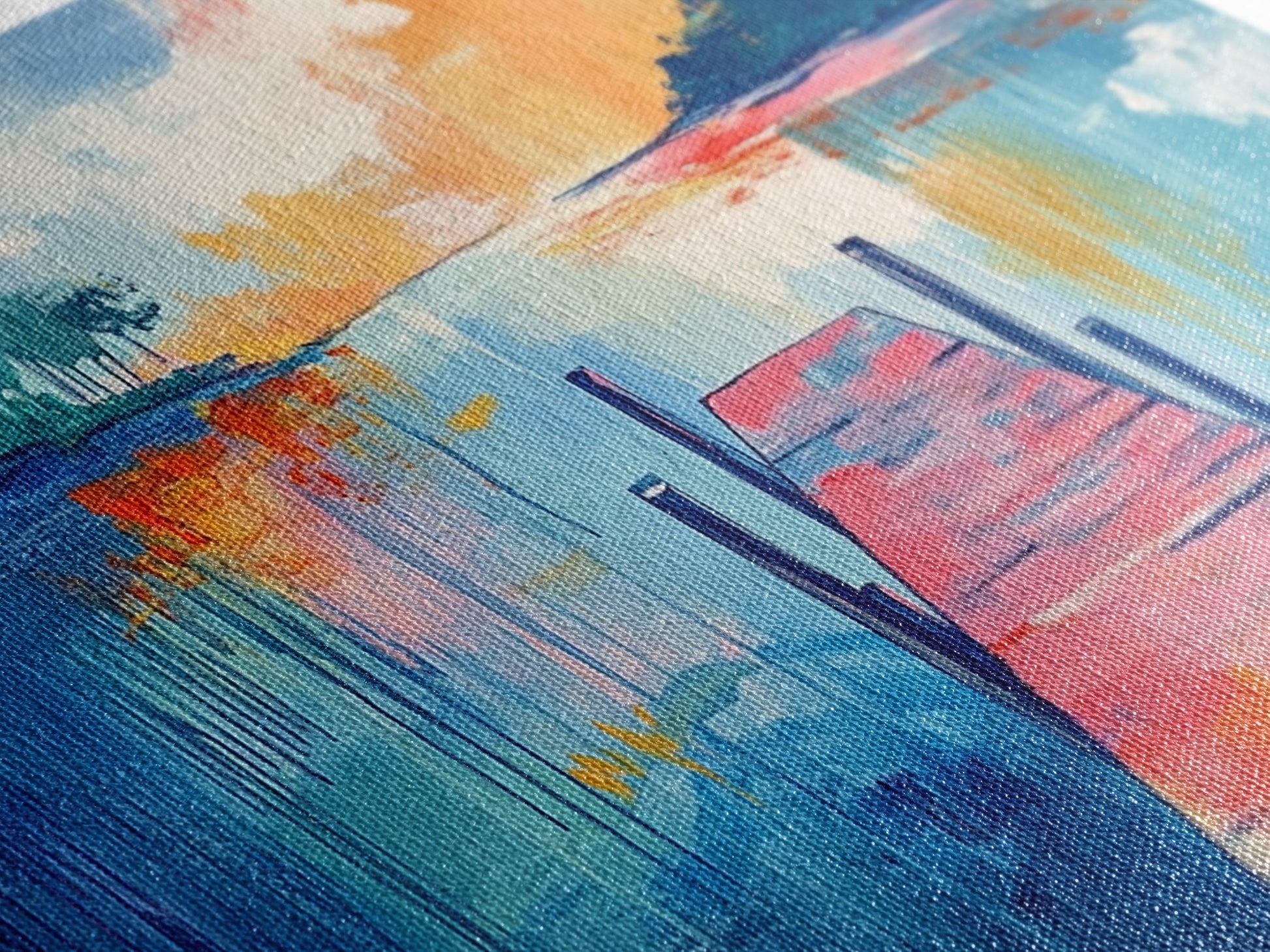 Most of our canvases are made in the USA, with the exception of canvases ordered with the light oak unstained frames, and any large canvases (24x48, 30x60, 16x48 and 20x60) ordered WITH a frame. These are temporarily made in and shipped from Europe, while we try to find a more consistent supplier in the USA.