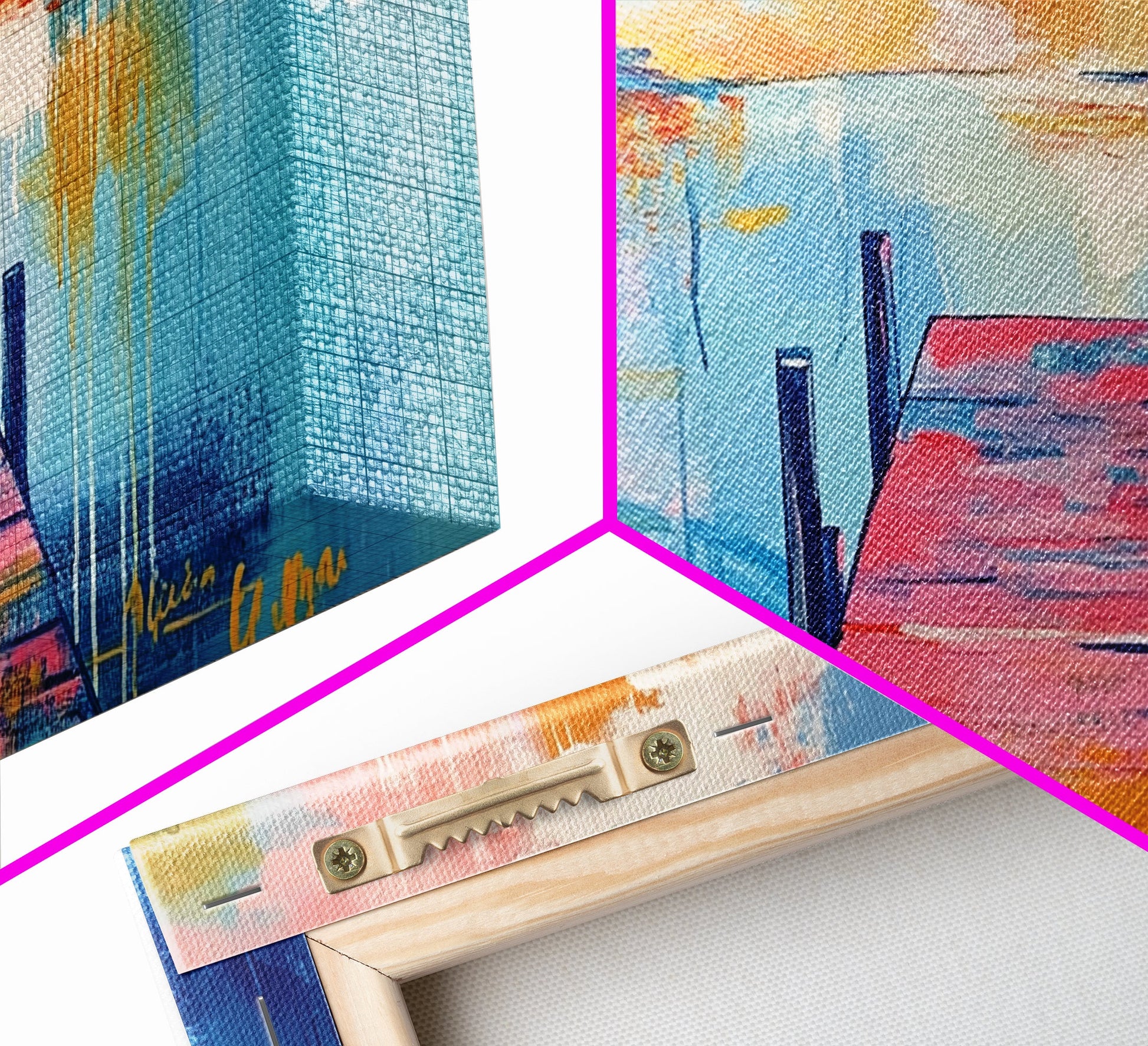 Hello and thank you for taking the time to view our modern high quality giclée artwork! We offer both posters and stretched canvas prints. Our posters are printed on Ultra Matte 60 lb / 230 GSM high quality photo paper, with a thickness of 10 mil. Our canvases are printed on museum grade 350 GSM canvas material with ECO friendly archival grade ink, then hand stretched and stapled over premium, FSC certified and shrink resistant frames. Designed and built to last a lifetime.