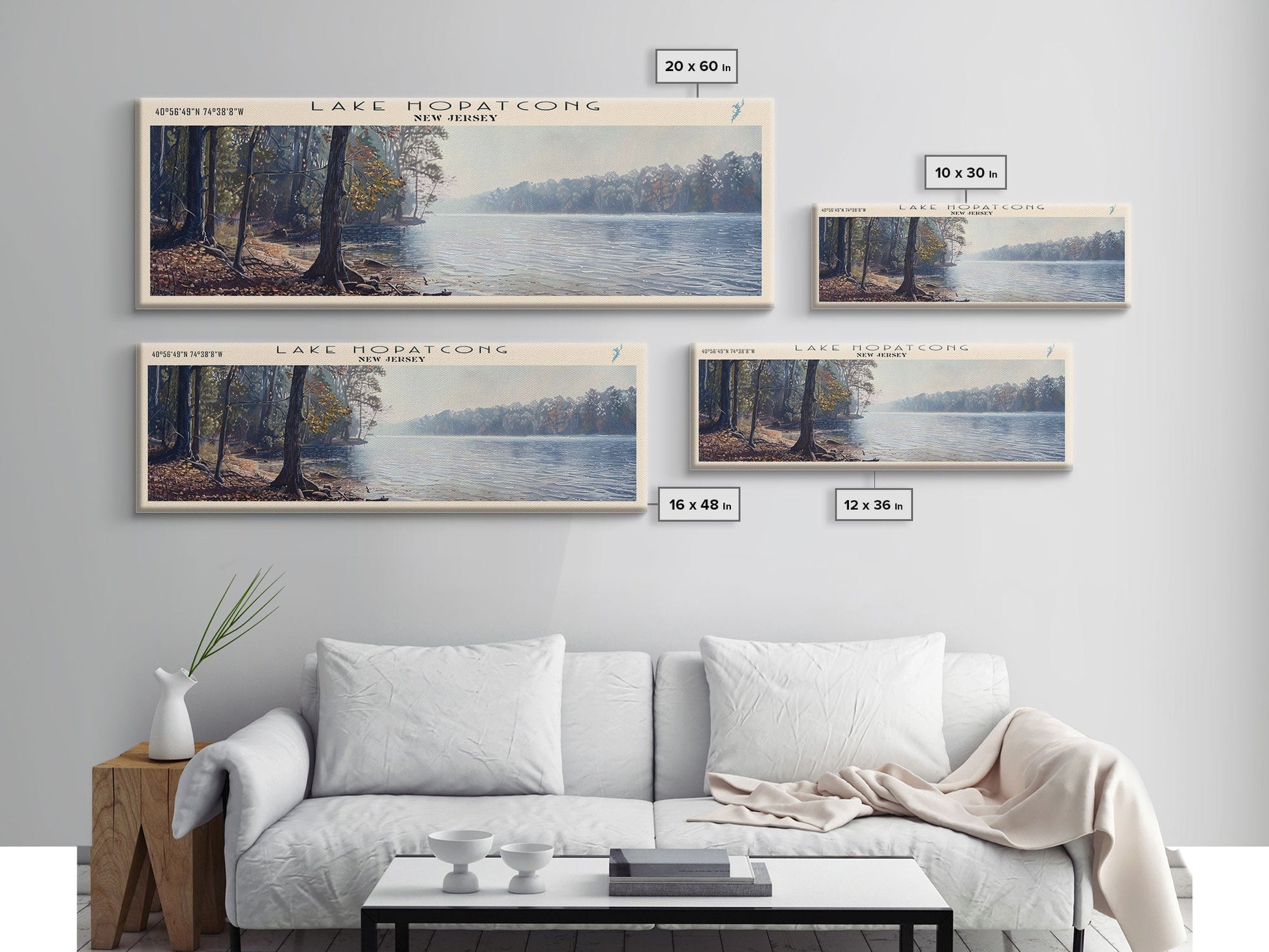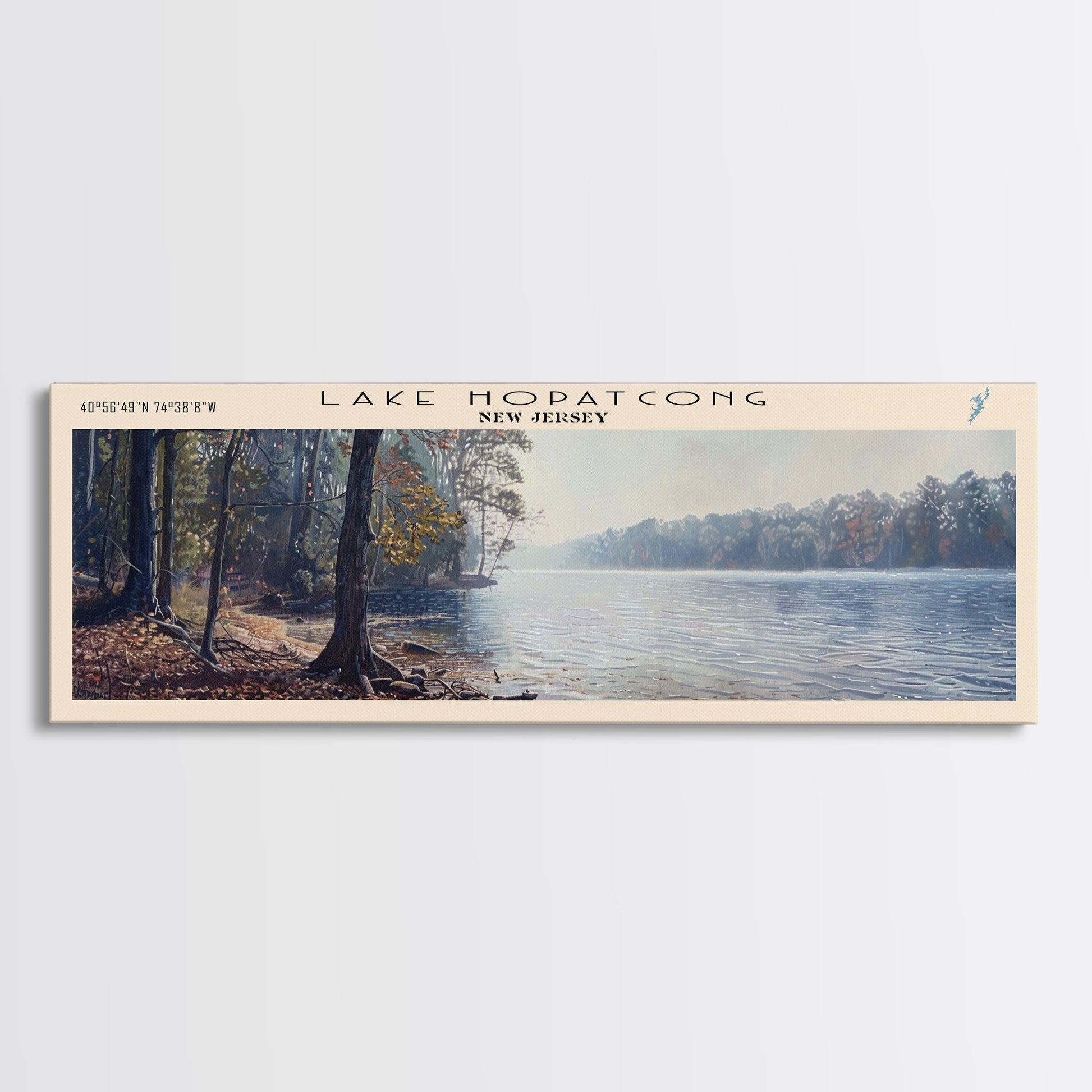 Lake Hopatcong New Jersey Framed Canvas Print, Lake House Decor, Panoramic Wall Art, Travel Poster, Beautiful Lake Painting, Home Art