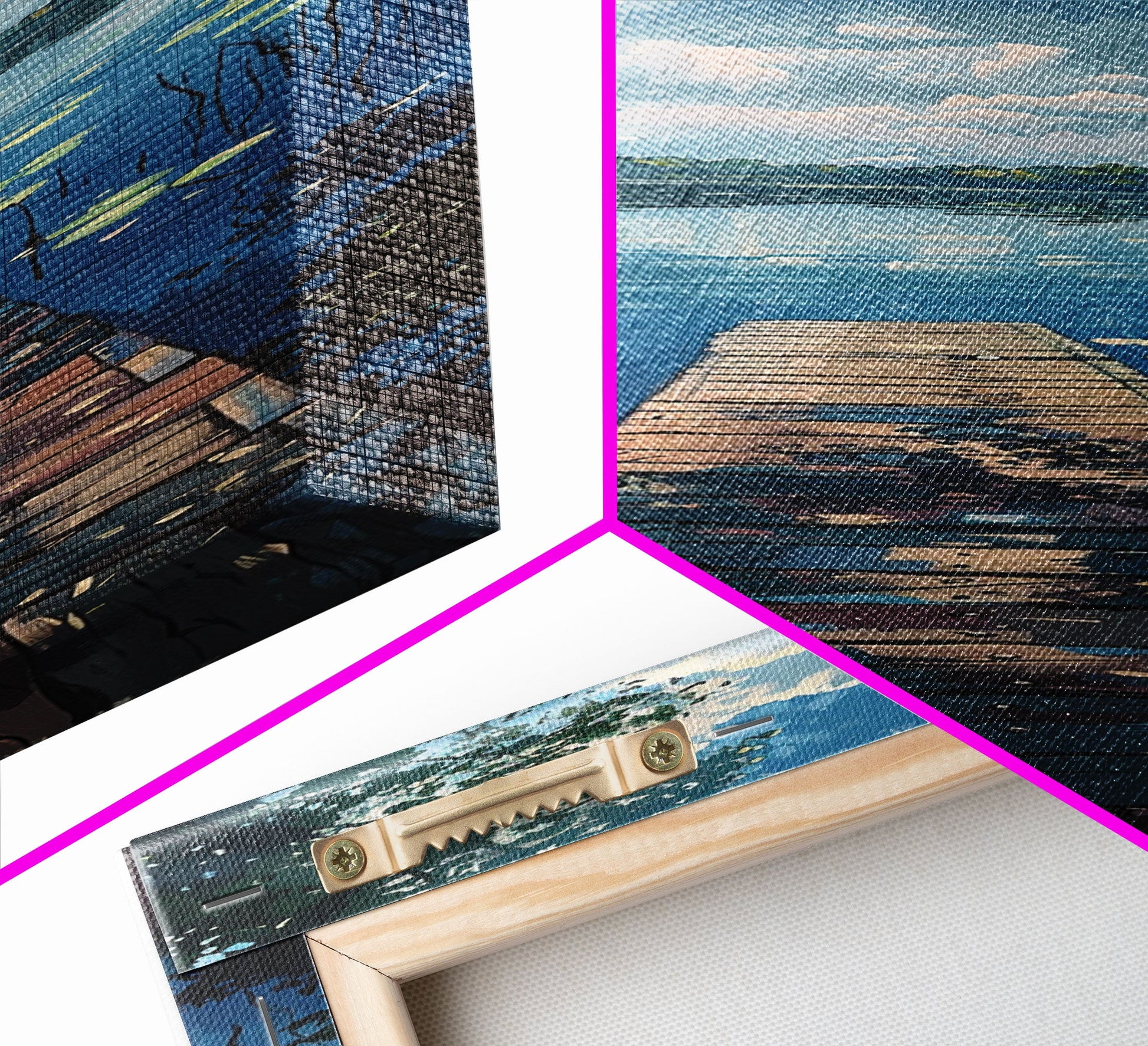 Lake Life, Framed Canvas Print, Summer At The Lake, Dock and Lilly Pads, Skinny Tall Panoramic Landscape Painting, Living Room Art