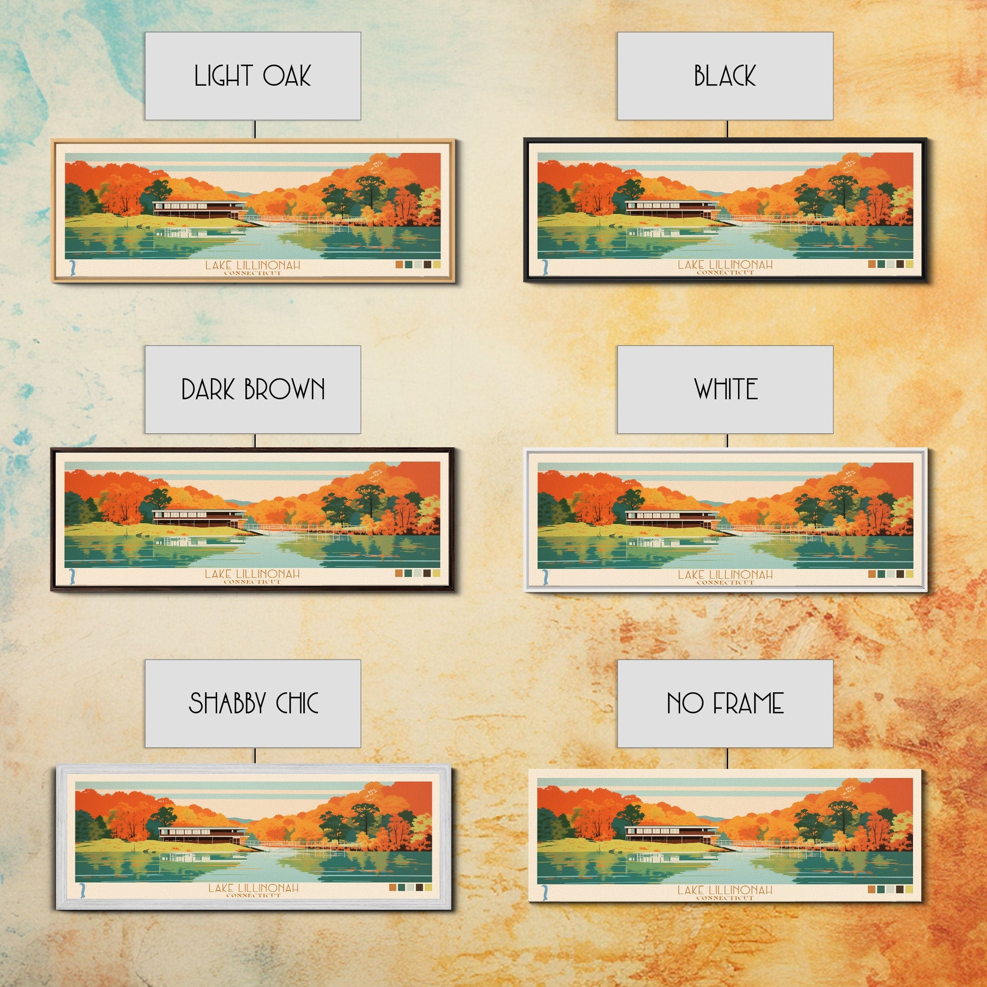 Lake Lillinonah Connecticut Framed Canvas Print, Panoramic Wall Art, Midcentury Modern, Pop Art, Living Room Decor, Travel Poster