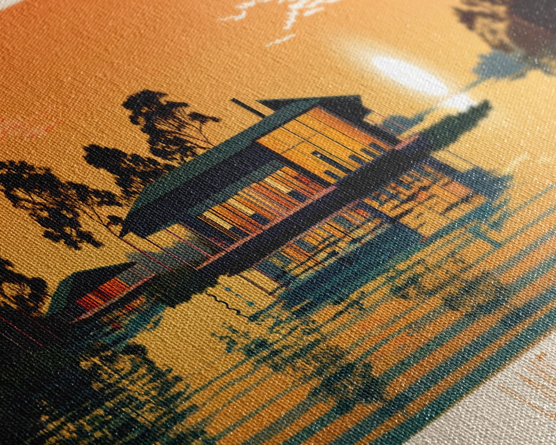 Lake Livingston Texas Framed Canvas Print, Panoramic Wall Art, Midcentury Modern, Pop Art, Bedroom Art, Travel Poster, Lake House Decor
