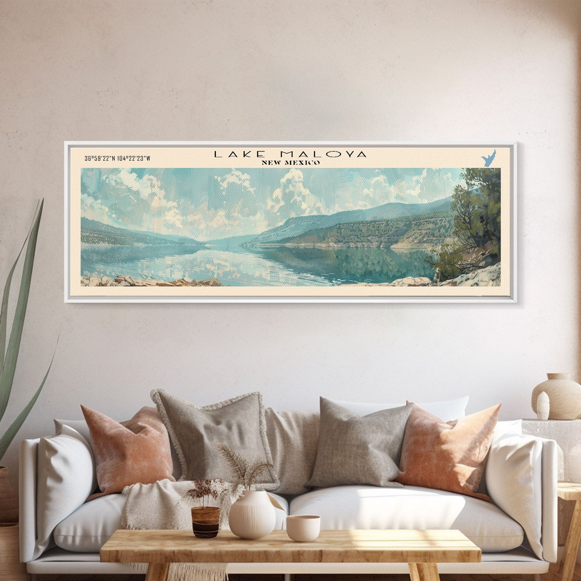 Lake Maloya New Mexico Framed Canvas Print, Lake House Decor, Panoramic Wall Art, Travel Poster, Serene Lake Painting, Contemporary Art