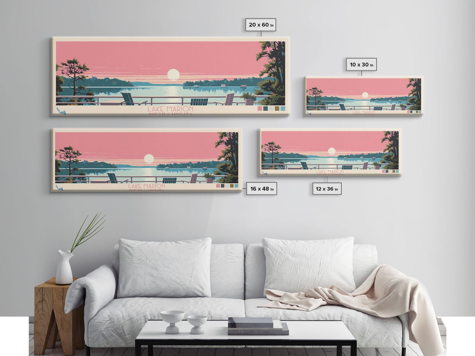 Lake Marion South Carolina Framed Canvas Print, Panoramic Wall Art, Midcentury Modern, Pop Art, Living Room Decor, Travel Poster