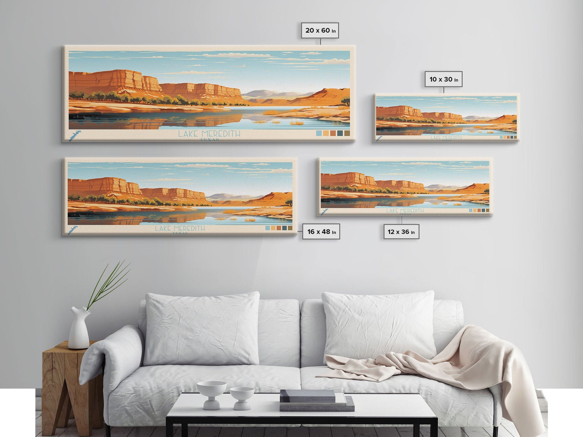 Lake Meredith Texas Framed Canvas Print, Panoramic Wall Art, Midcentury Modern, Pop Art, Bedroom Art, Travel Poster, Lake House Decor