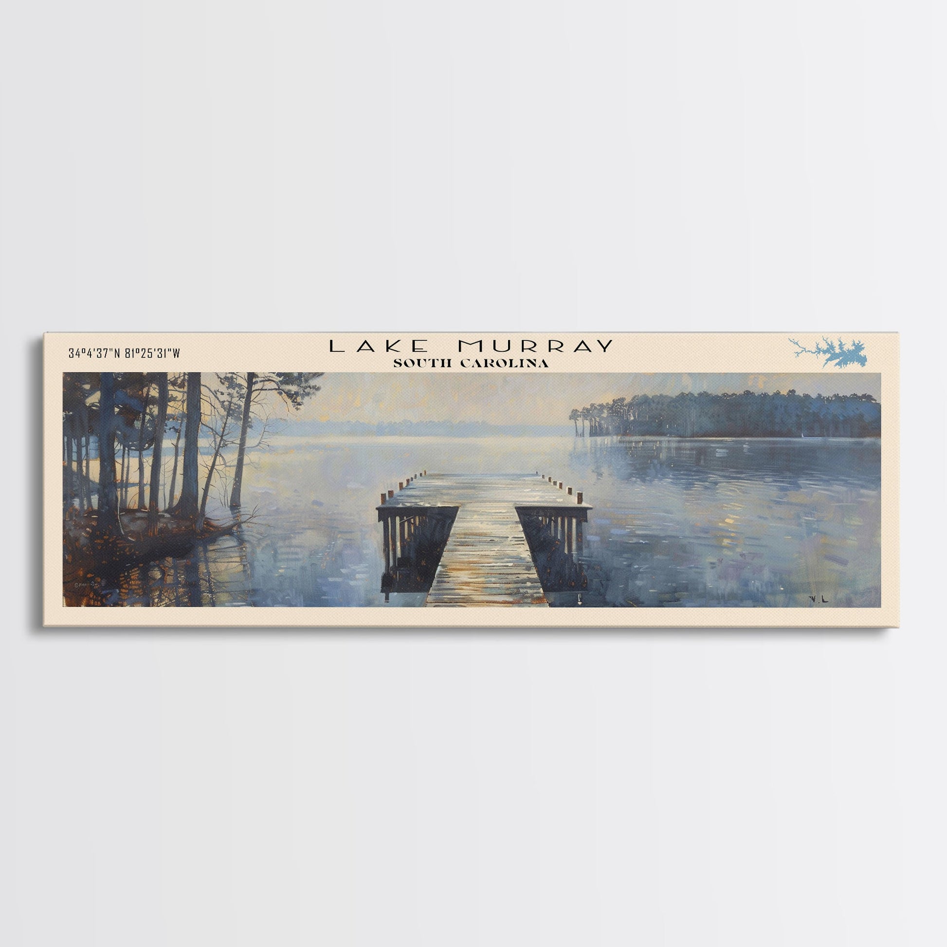 Lake Murray South Carolina Framed Canvas Print, Lake House Decor, Panoramic Wall Art, Travel Poster, Serene Landscape Painting, Bedroom Decor