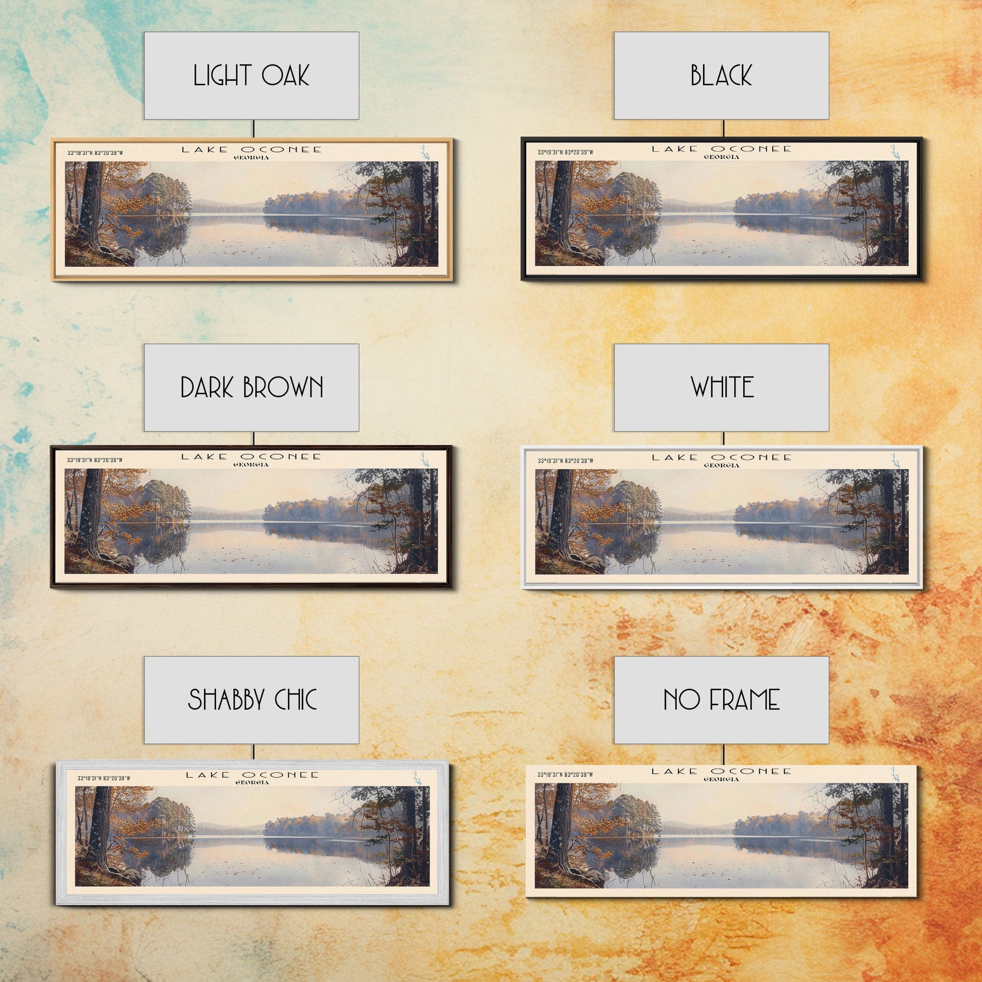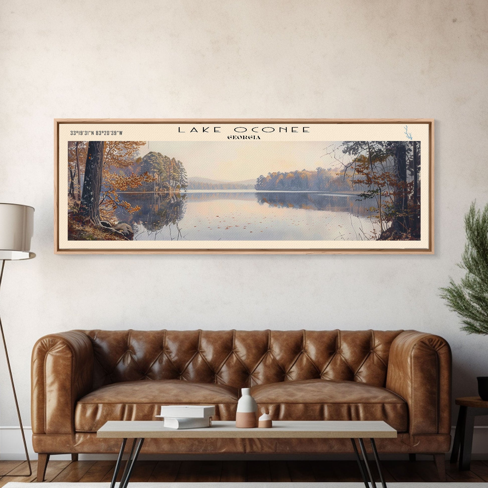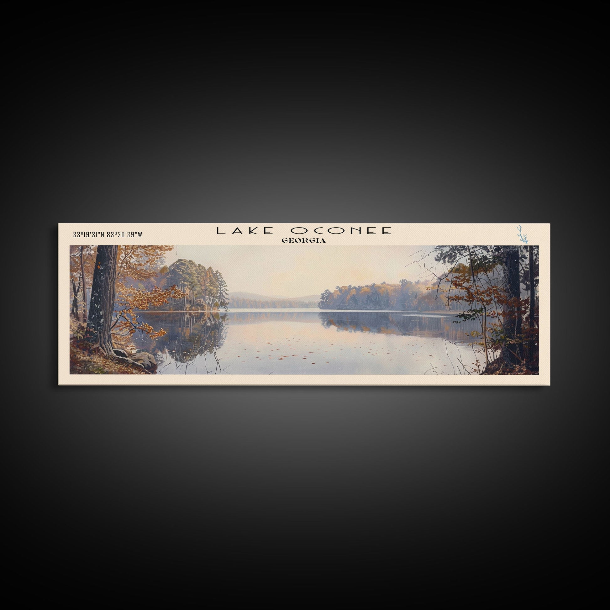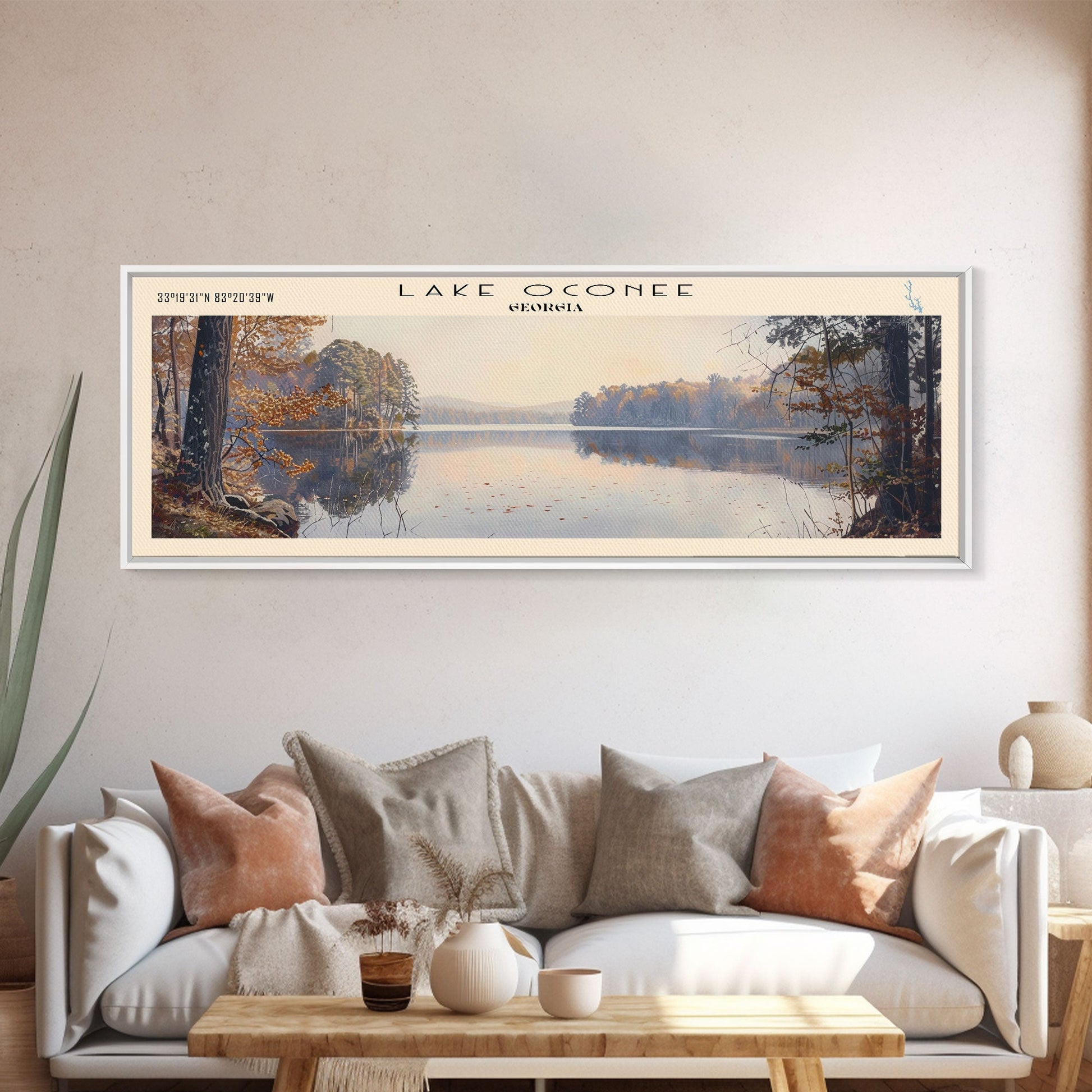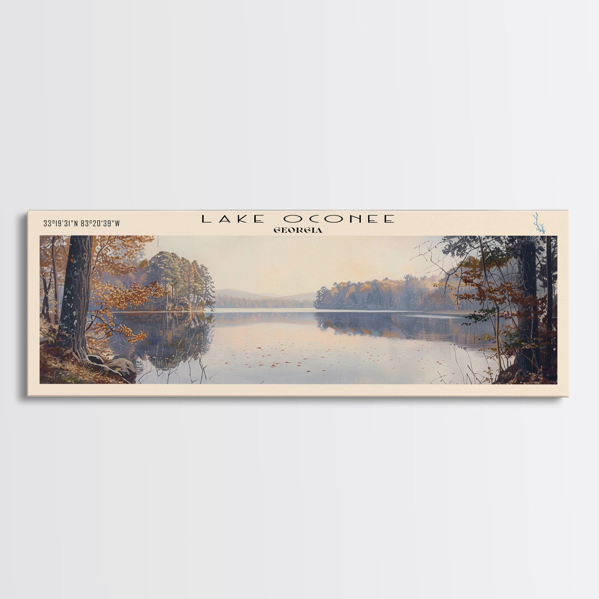 Lake Oconee Georgia Framed Canvas Print, Lake House Decor, Panoramic Wall Art, Travel Poster, Serene Landscape Painting, Living Room Decor
