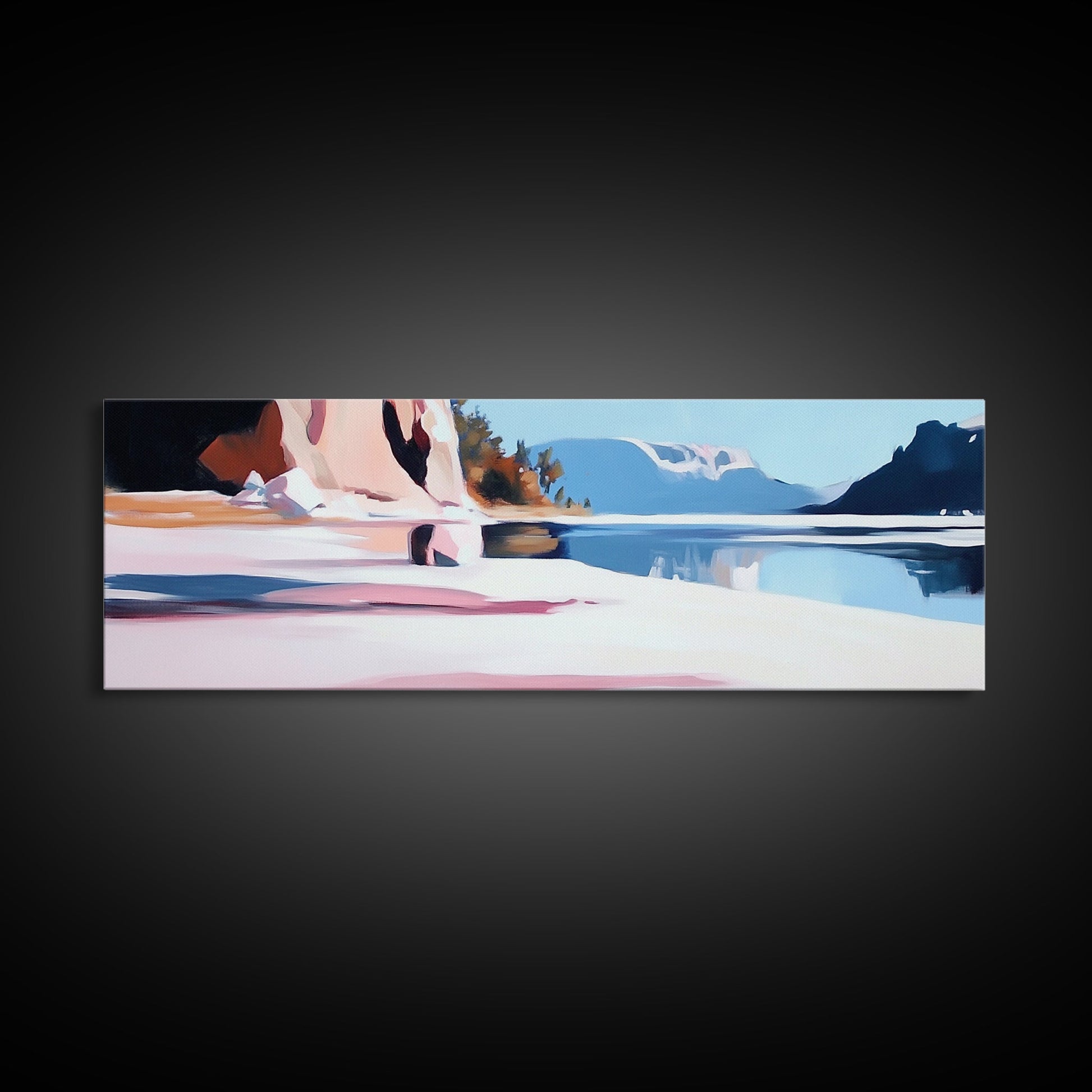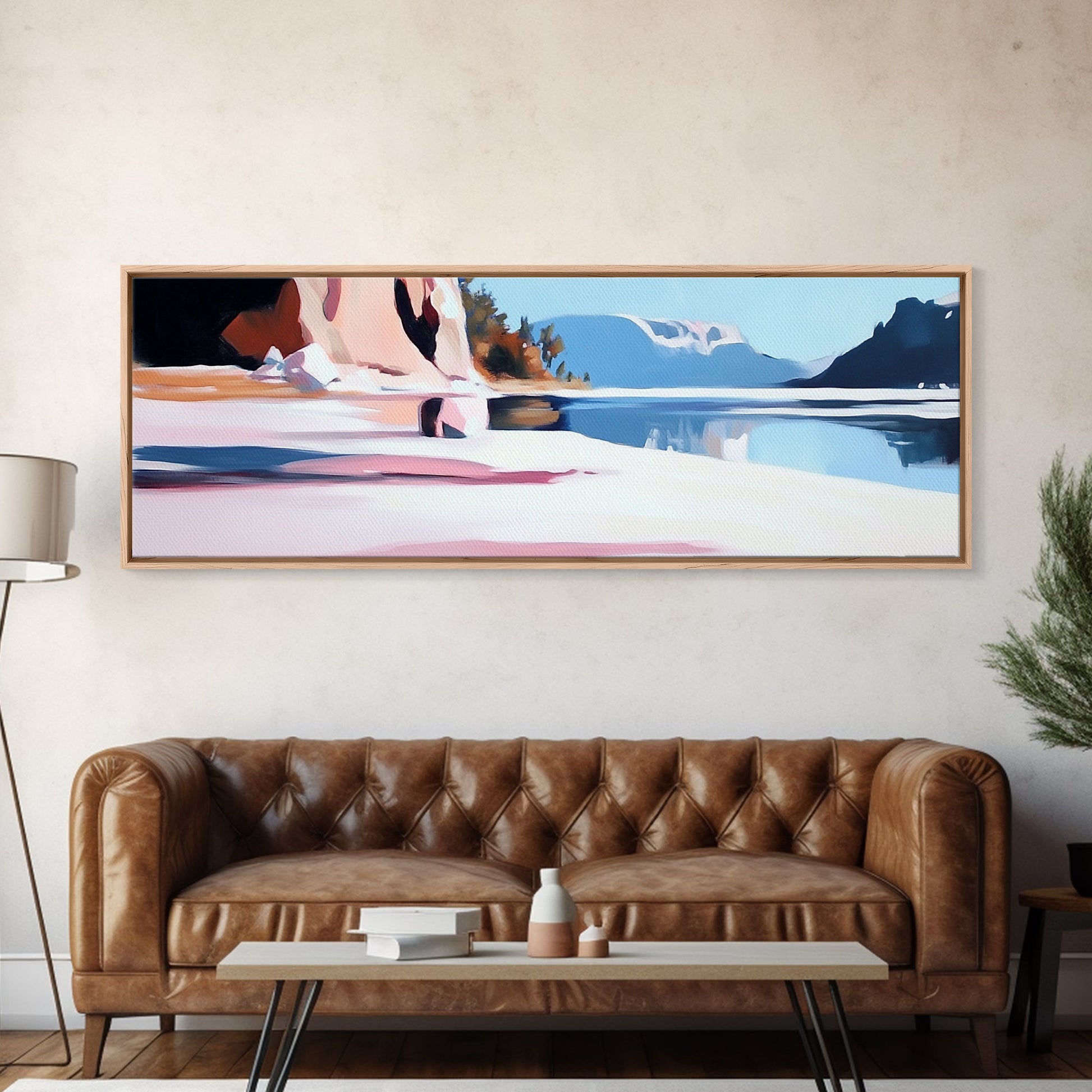 Lake Reflection, Serene Nature, Framed Canvas Print, Minimalist Wall Art, Living Room Decor, Blue Tones, Tranquil Home Aesthetic