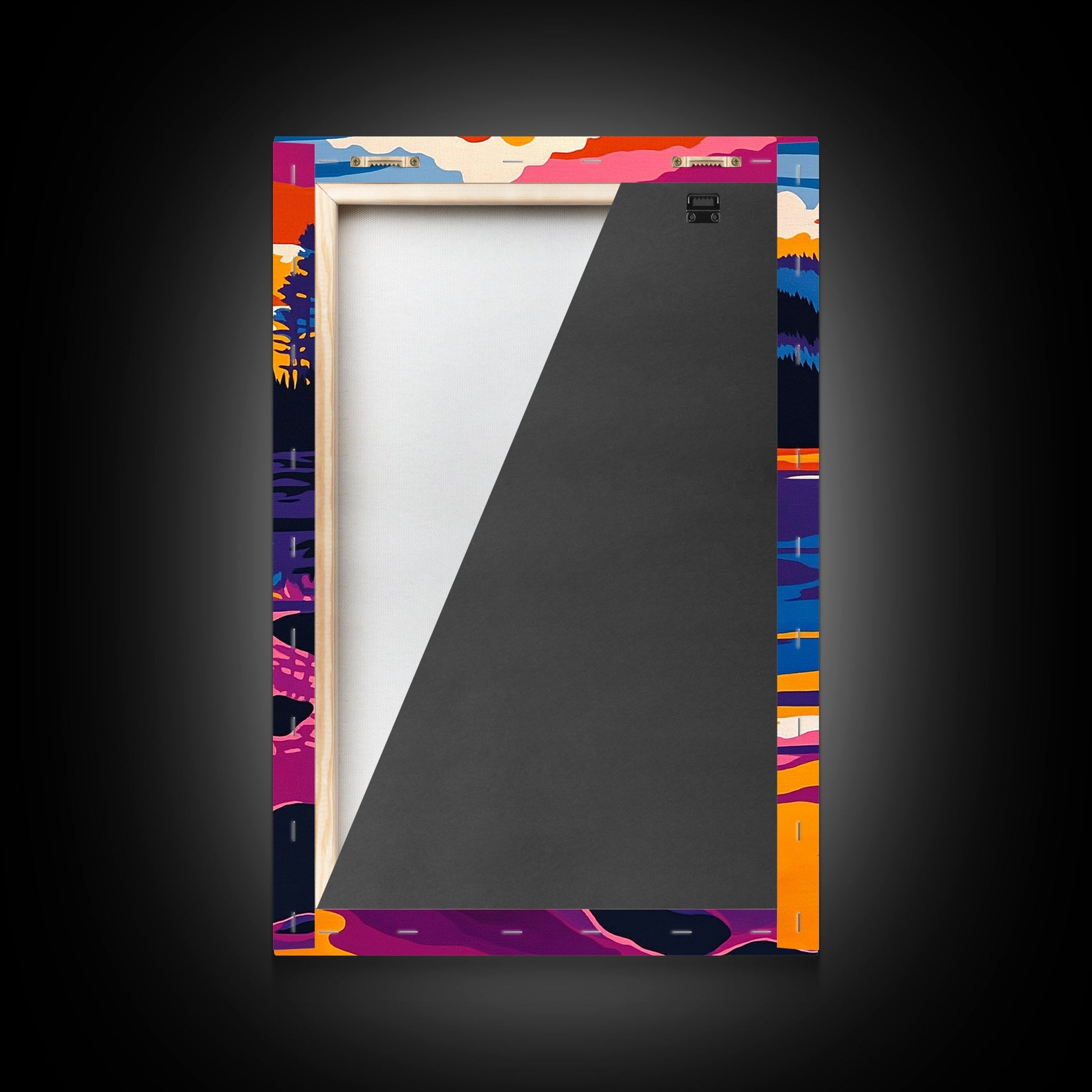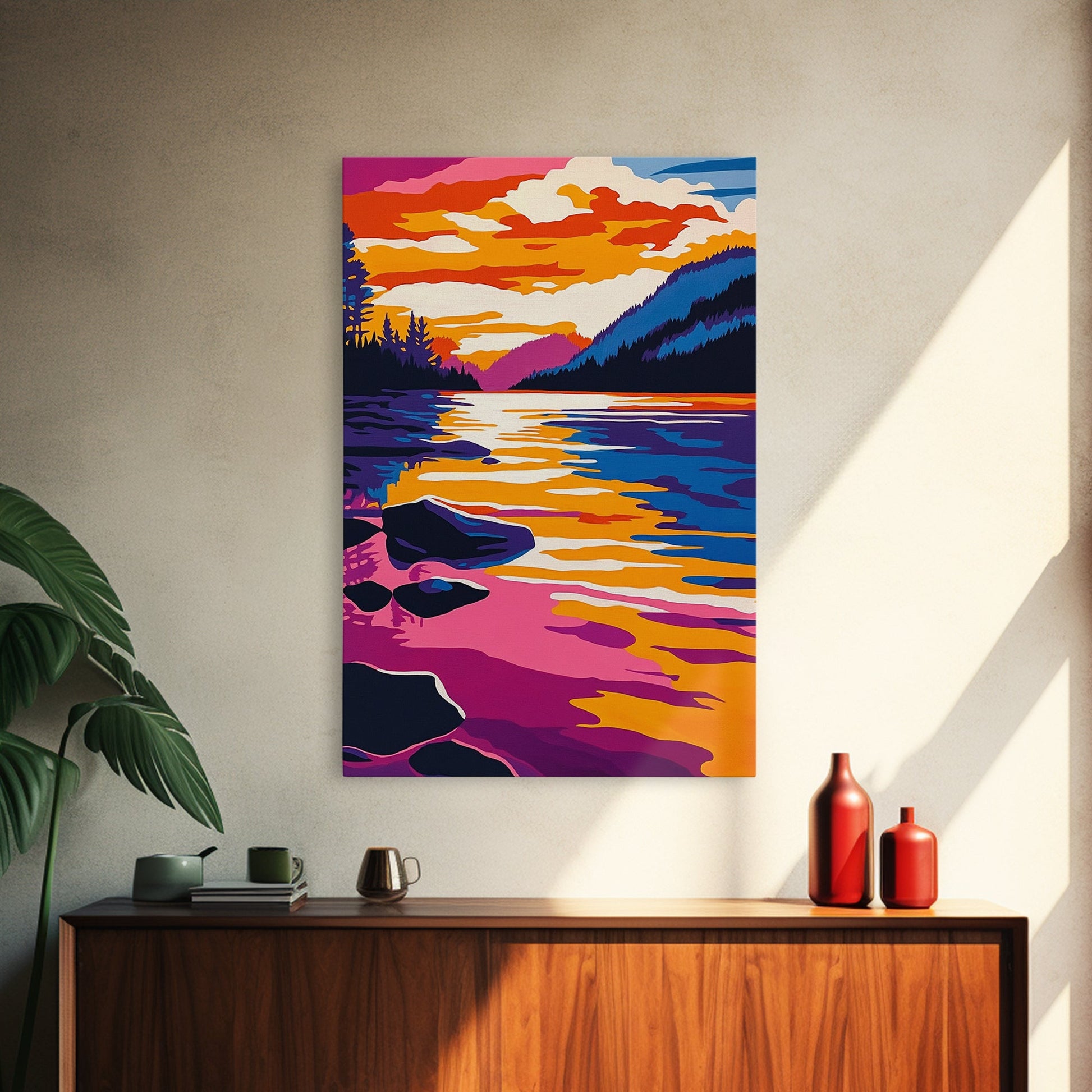 Lake, Reflective Sunset, Tranquil Nature, Canvas Print, Serene Landscape, Home Wall Art, Mountain View Decor, Living Room Artwork