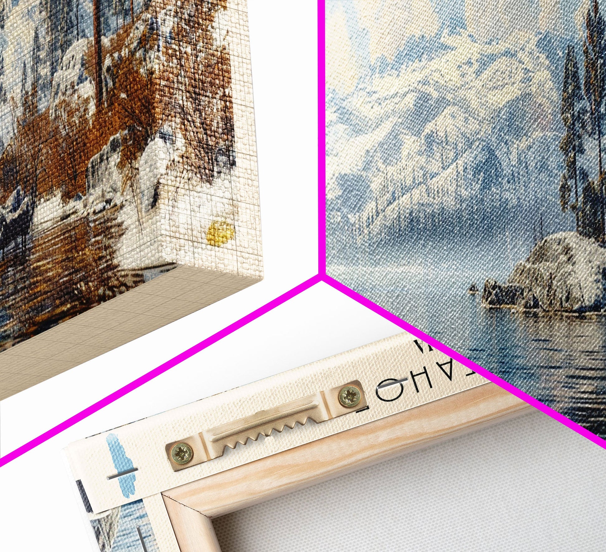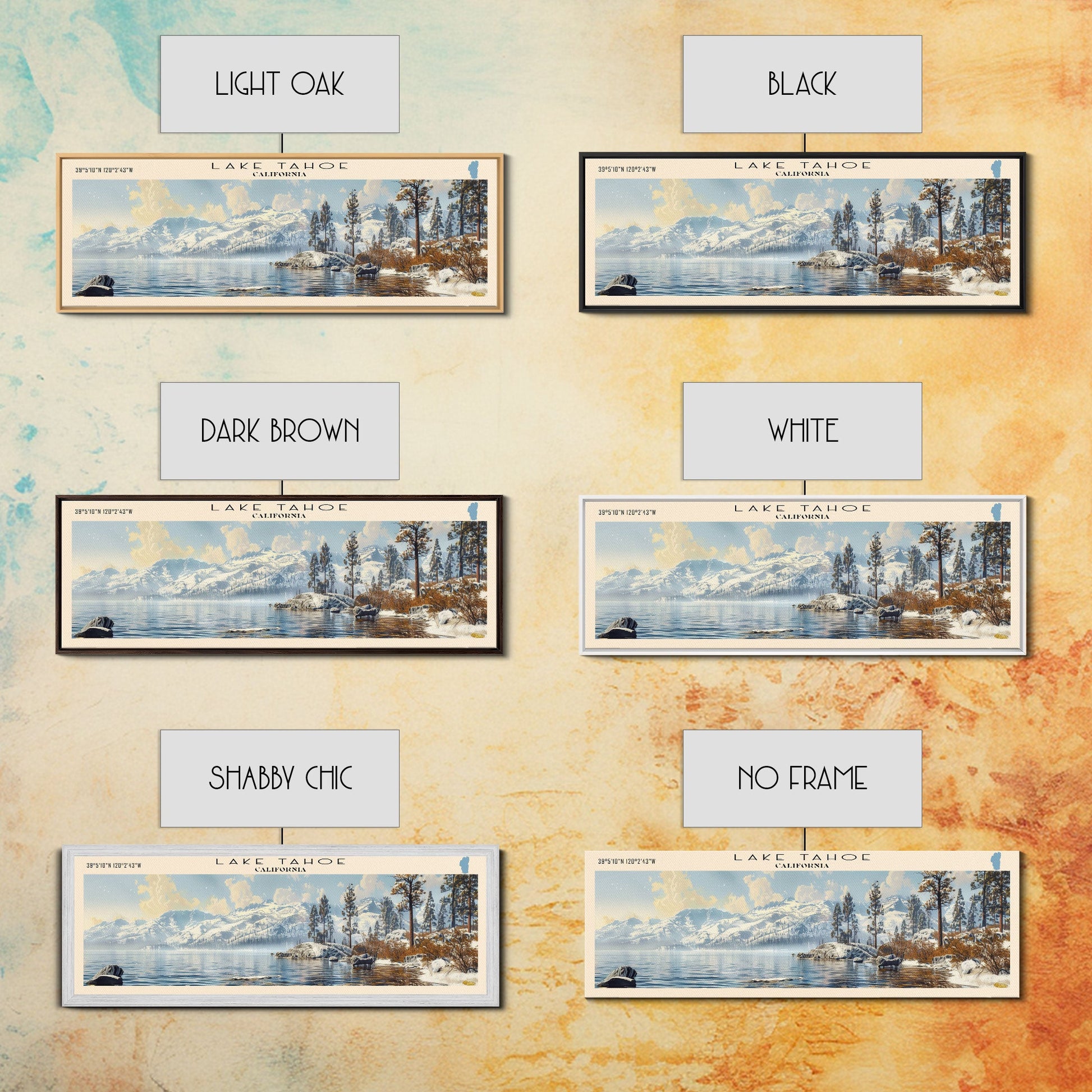 Lake Tahoe Framed Canvas Print, Lake House Decor, Panoramic Wall Art, Travel Poster, Stunning Landscape Painting, Contemporary Art