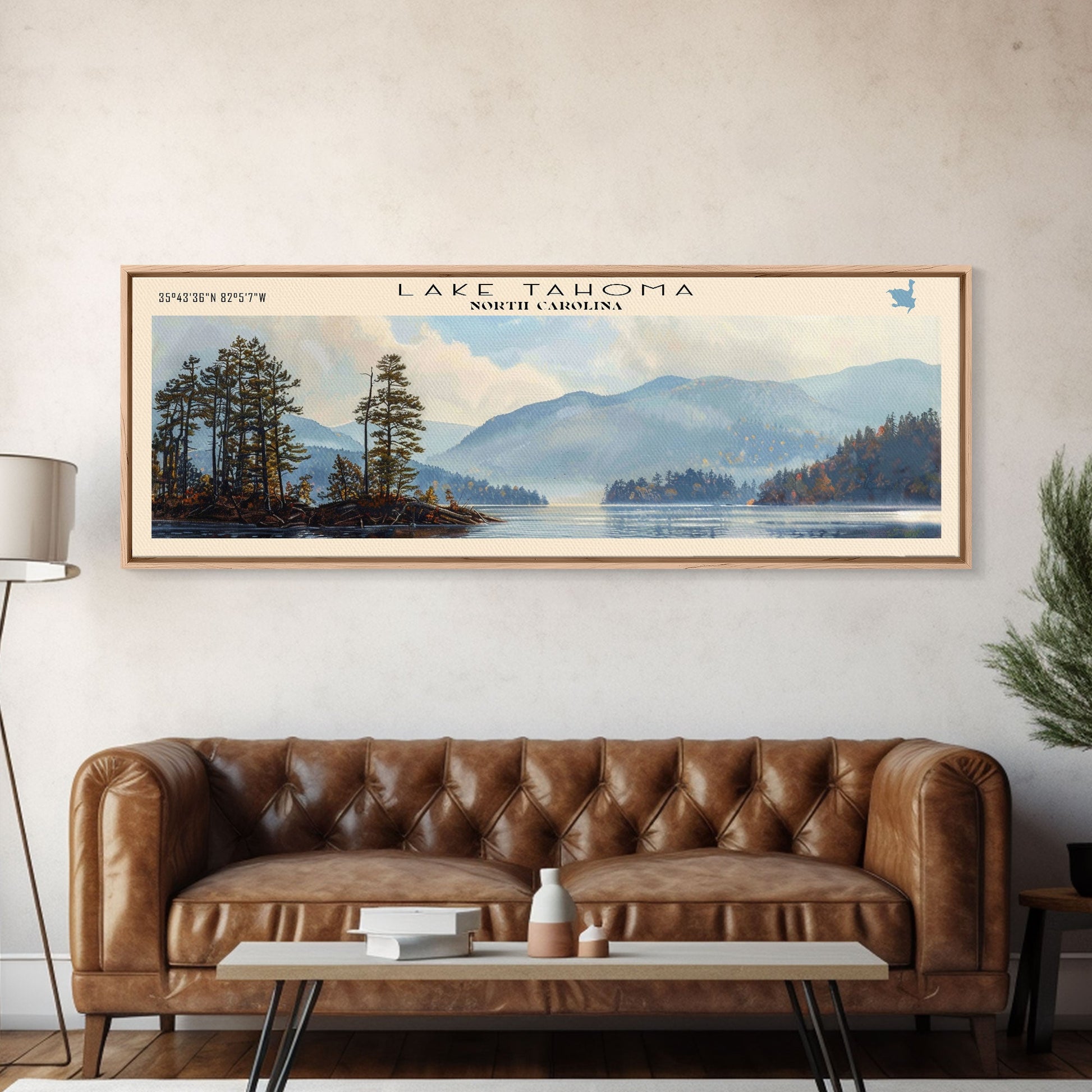 Lake Tahoma North Carolina Framed Canvas Print, Lake House Decor, Panoramic Wall Art, Travel Poster, Serene Landscape Painting, Rustic Art