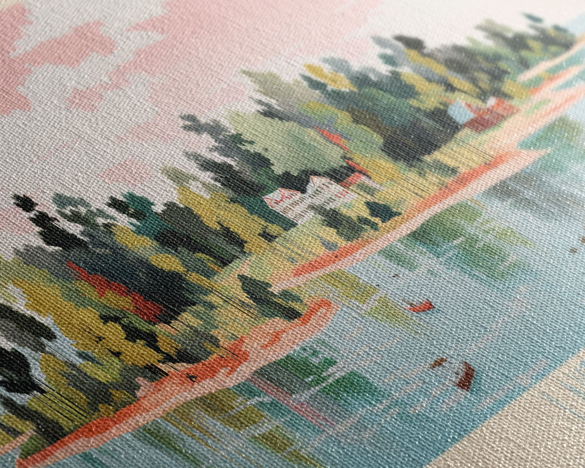 Lake Wateree, South Carolina Panoramic Wall Art Framed Canvas Print, Midcentury Modern, Pop Art, Home Decor, Travel Poster, Living Room Art