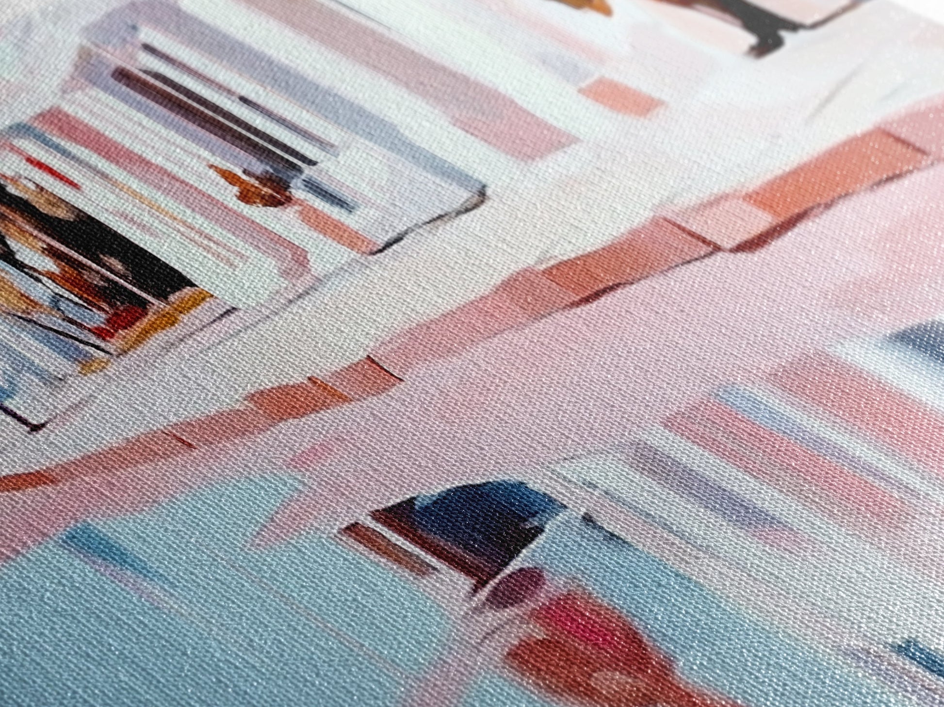 Most of our canvases are made in the USA, with the exception of canvases ordered with the light oak unstained frames, and any large canvases (24x48, 30x60, 16x48 and 20x60) ordered WITH a frame. These are temporarily made in and shipped from Europe, while we try to find a more consistent supplier in the USA.