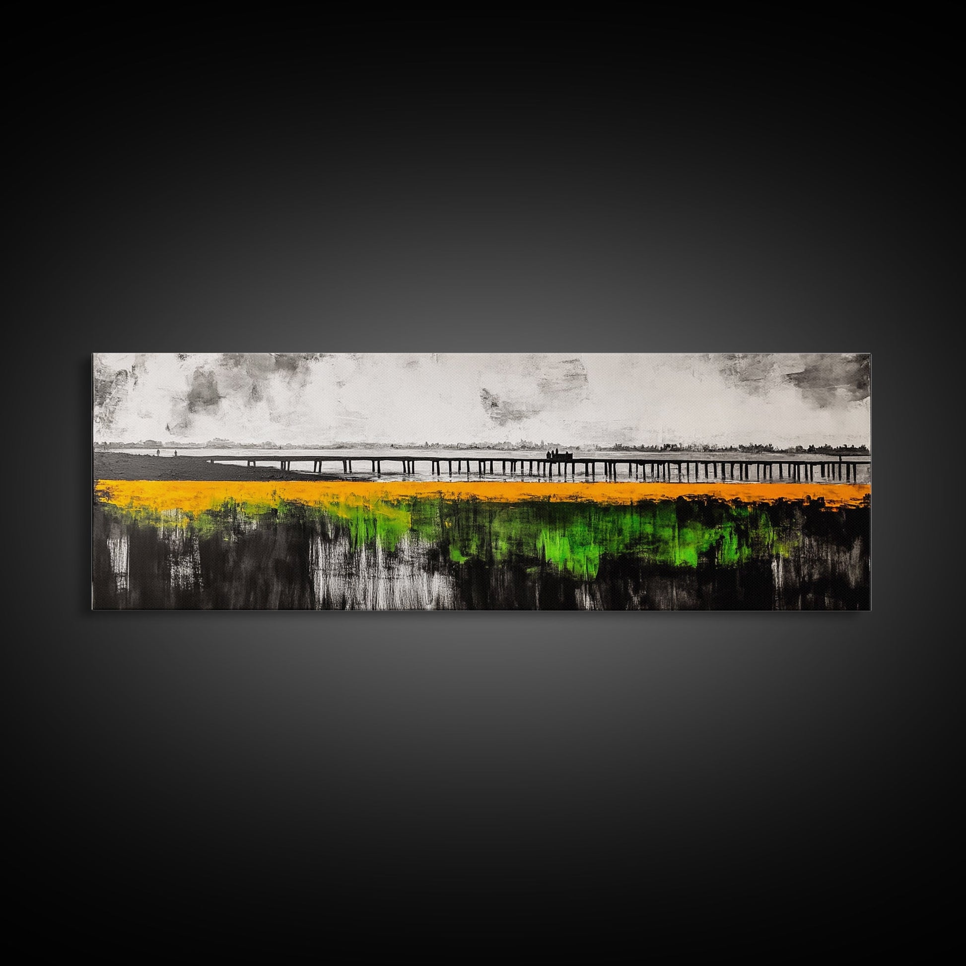 Lakeside Reflection, Golden Meadow, Dramatic Sky, Framed Canvas Print, Landscape Wall Art, Nature Inspired Art, Bedroom Wall Decor, Rustic Charm