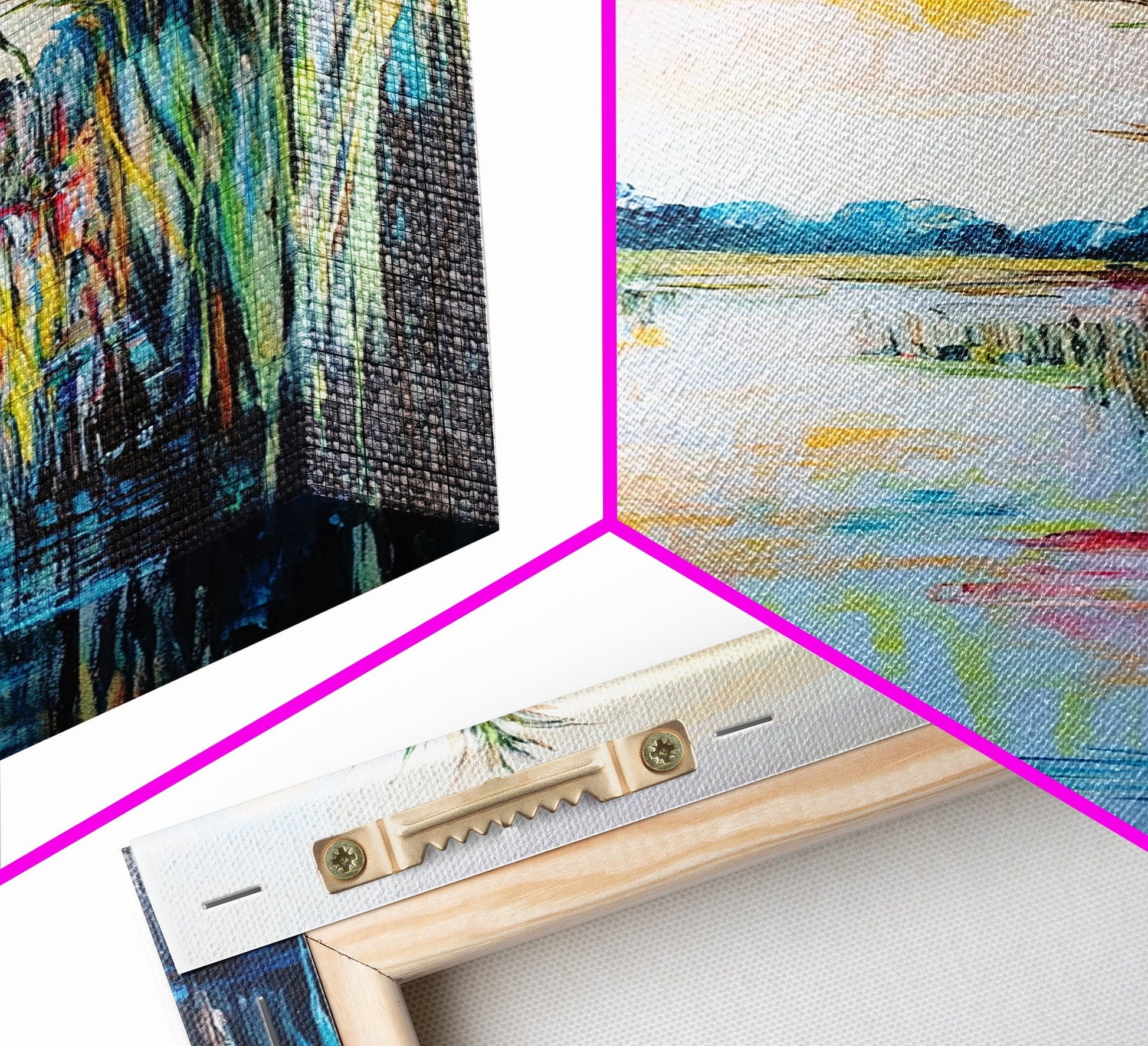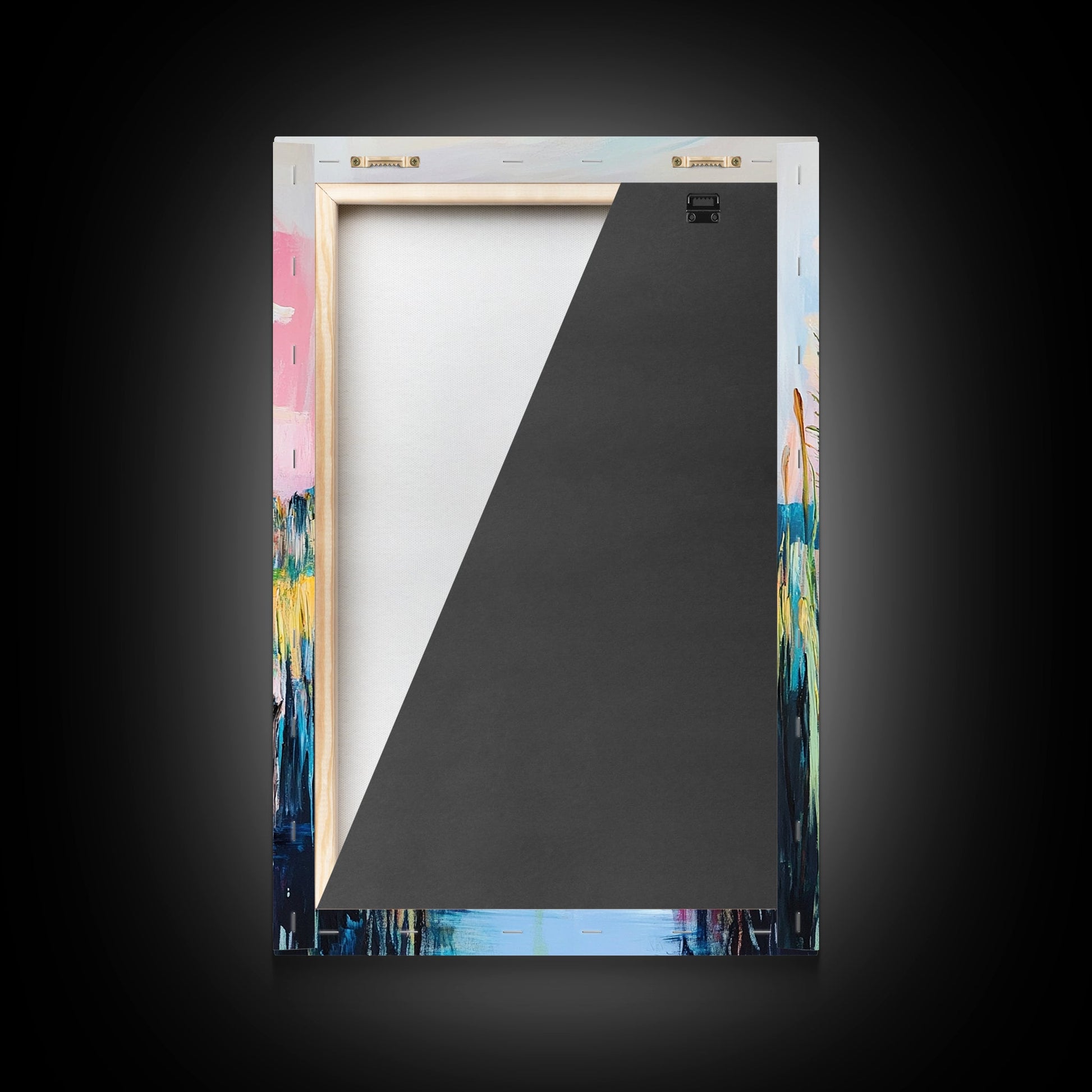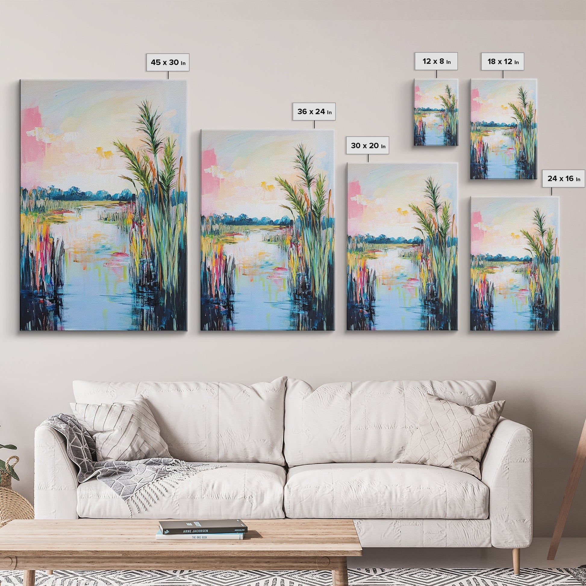 Lakeside Serenity Framed Canvas Print | Nature Landscape Painting | Peaceful Water Reflection Art | Boho Wall Decor | Pastel Colors