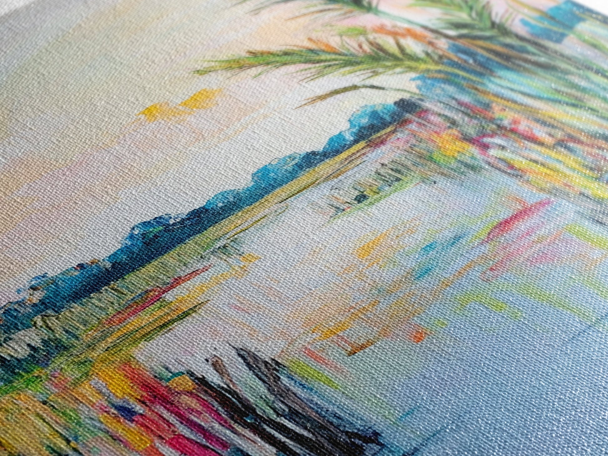 Most of our canvases are made in the USA, with the exception of canvases ordered with the light oak unstained frames, and any large canvases (24x48, 30x60, 16x48 and 20x60) ordered WITH a frame. These are temporarily made in and shipped from Europe, while we try to find a more consistent supplier in the USA.