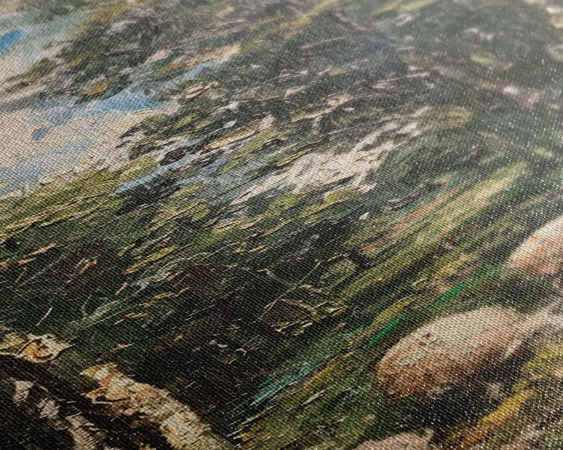 Most of our canvases are made in the USA, with the exception of canvases ordered with the light oak unstained frames, and any large canvases (24x48, 30x60, 16x48 and 20x60) ordered WITH a frame. These are temporarily made in and shipped from Europe, while we try to find a more consistent supplier in the USA.