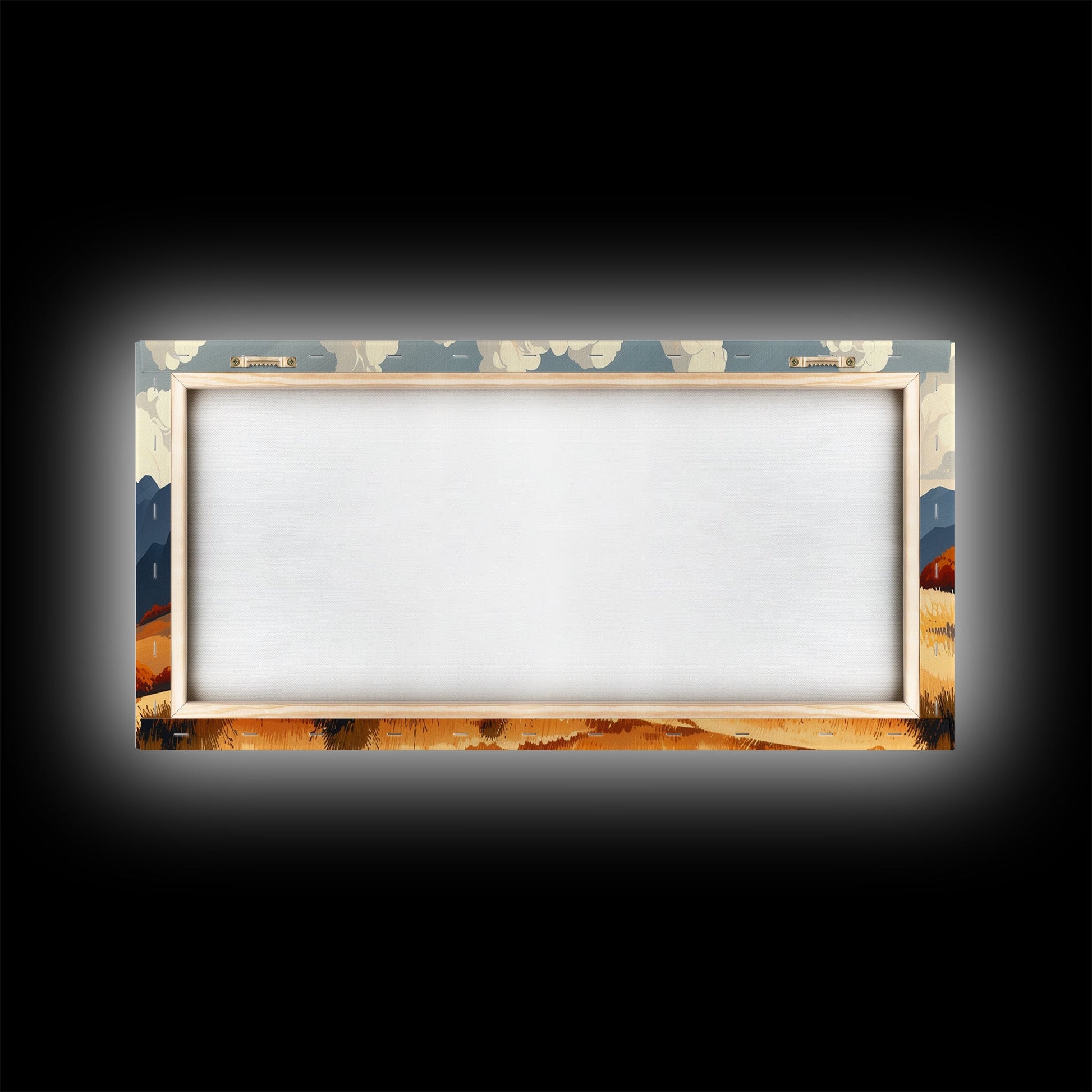 Landscape Print, Muted Southwestern Landscape, Hazy Mountain Valley Oil Painting Print, Panoramic Wall Art, Calm Above Bed Art