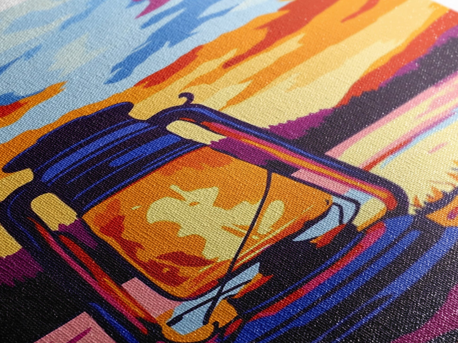 Lantern Glow, Rustic Camping Art, Warm Night Scene, Sunset Painting, Framed Canvas Print, Cabin Wall Art, Nature Decor, Outdoor Aesthetic