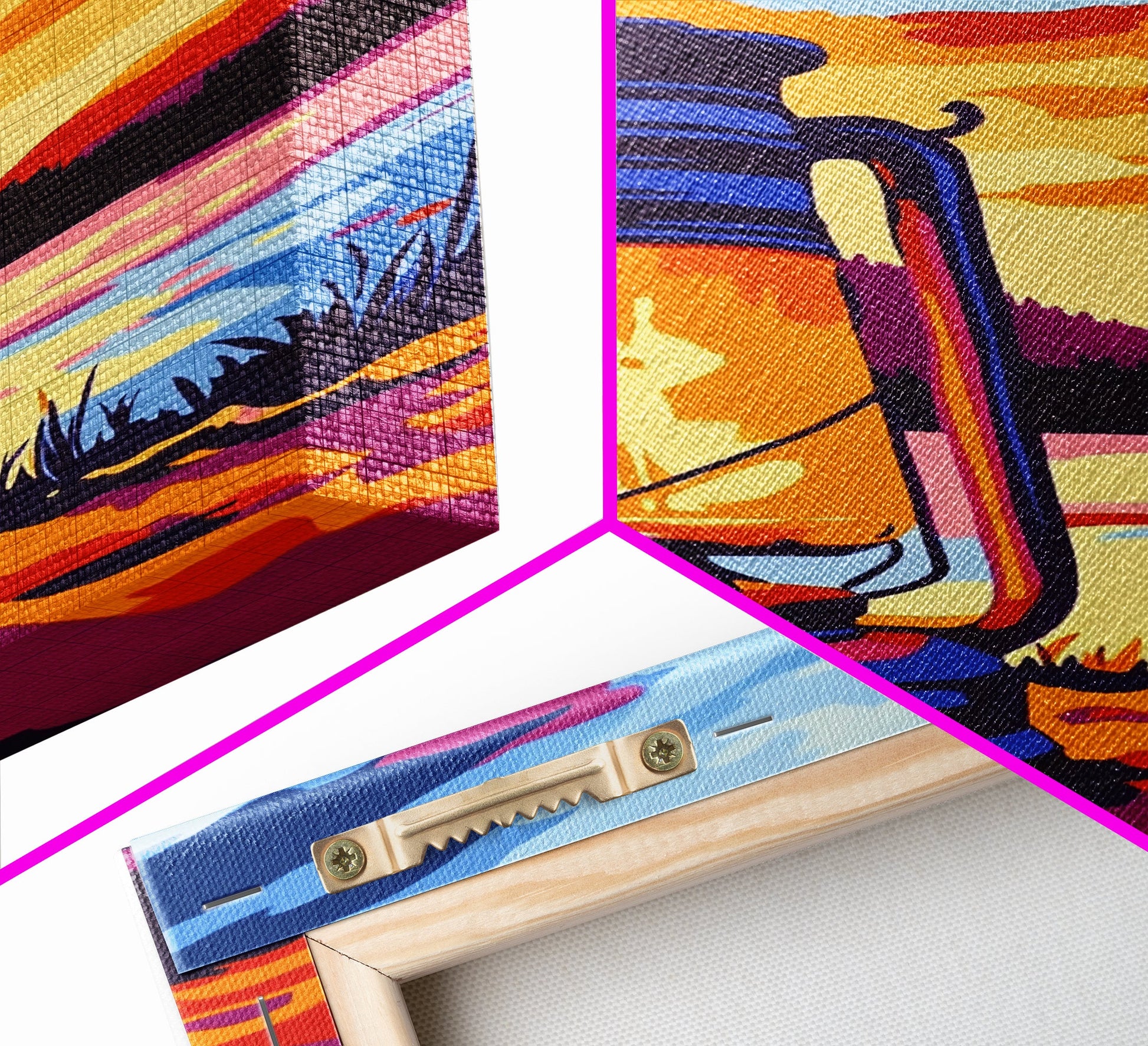 Hello and thank you for taking the time to view our modern high quality giclée artwork! We offer both posters and stretched canvas prints. Our posters are printed on Ultra Matte 60 lb / 230 GSM high quality photo paper, with a thickness of 10 mil. Our canvases are printed on museum grade 350 GSM canvas material with ECO friendly archival grade ink, then hand stretched and stapled over premium, FSC certified and shrink resistant frames. Designed and built to last a lifetime.