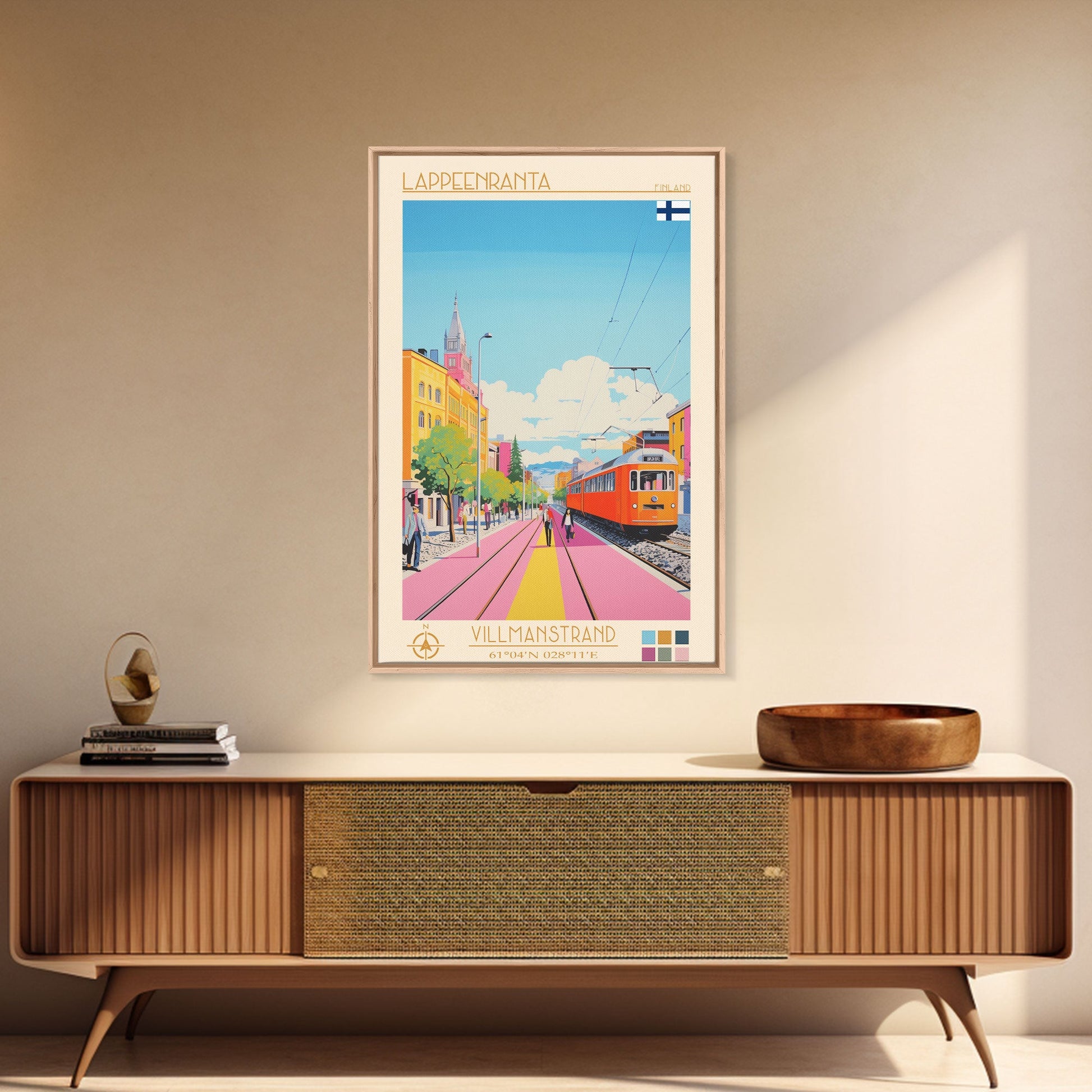 Lappeenranta Finland Travel Poster Framed Canvas Print, Midcentury Modern Art, Pop Art Wall Decor, Home Decor, Vacation Gift, Bedroom Art