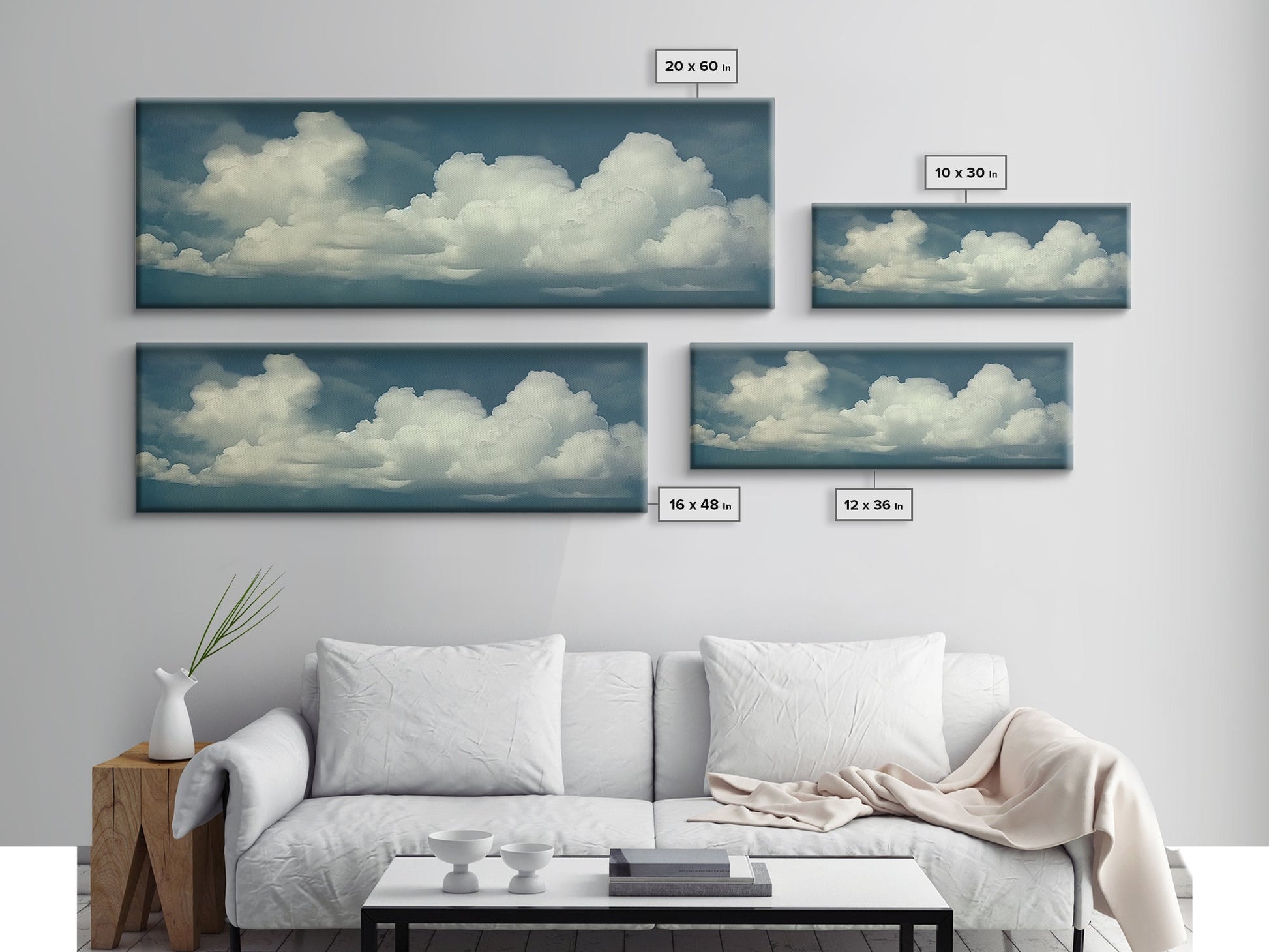Large Format Clouds Wall Art - Panoramic Print - Framed Canvas Print - Panoramic Framed Canvas Cloudy Art Print - Clouds On A Blue Sky