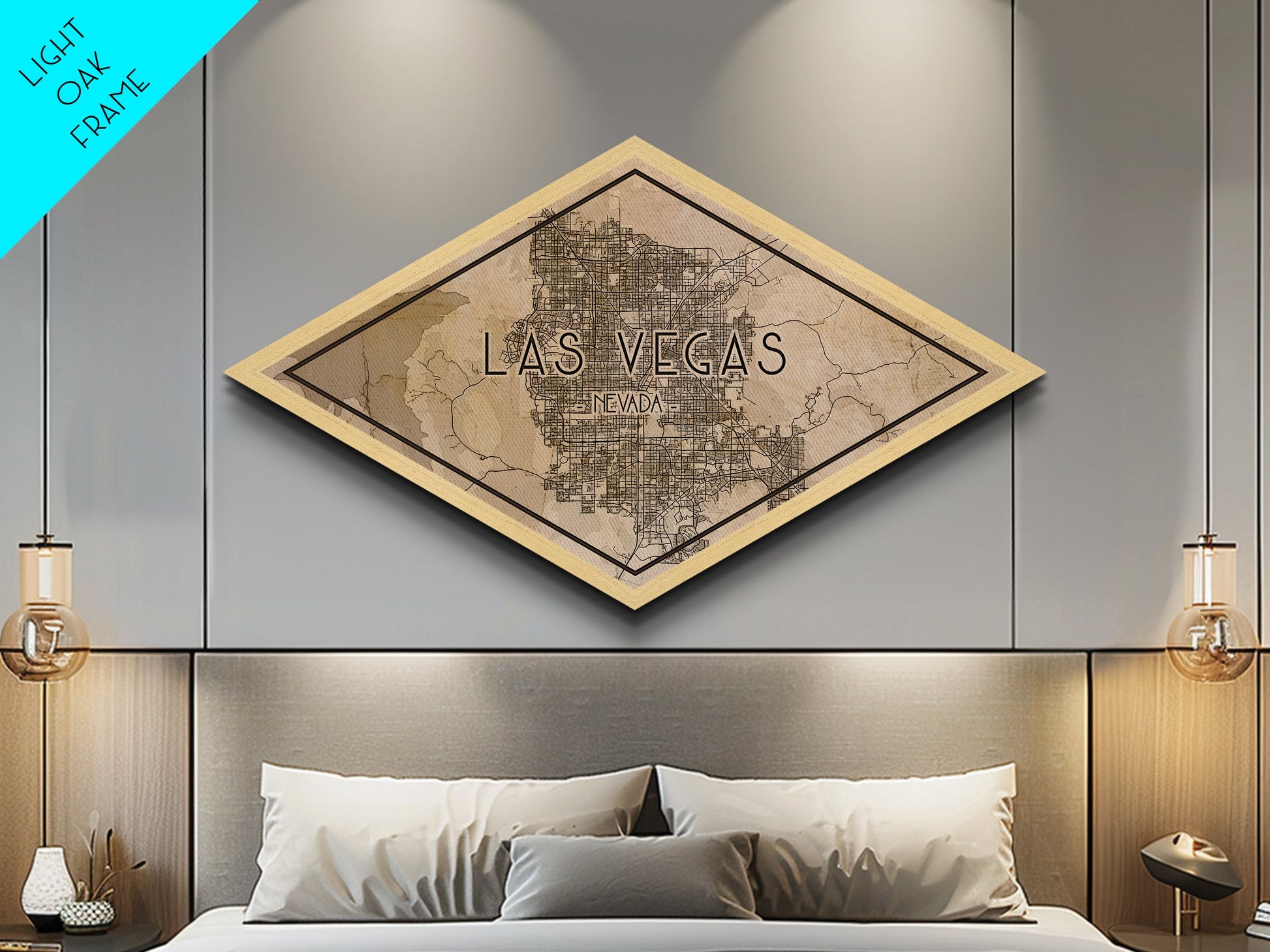 Las Vegas Diamond Shaped City Map, Custom Diamond Shaped Wall Art, City Map Canvas