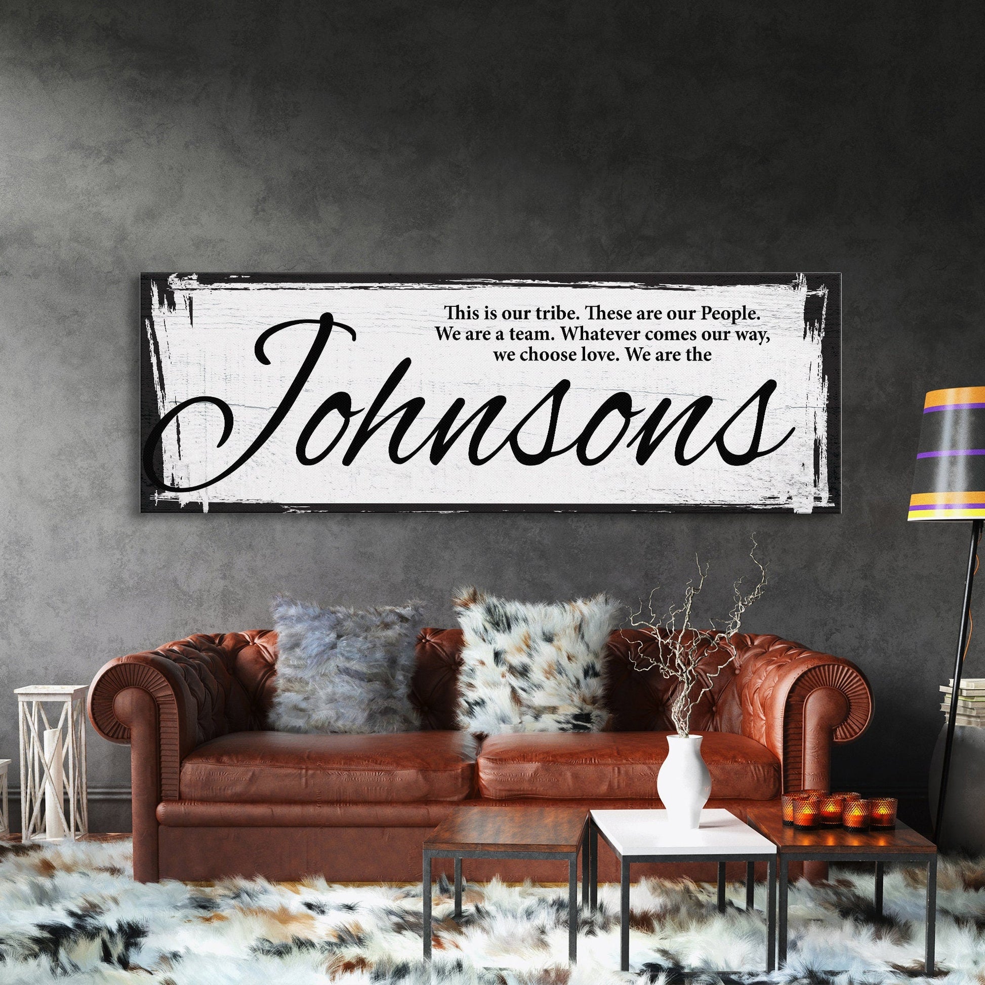 Last name sign canvas print, family name sign, our tribe sign, family wall decor, kitchen sign, inspirational quote, living room sign
