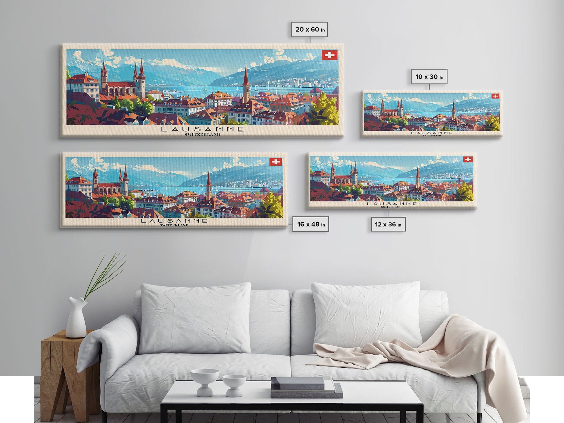 Lausanne Switzerland Travel Art, City Art, Framed Canvas Print or Metal Wall Art, Europe Travel Poster, Panoramic Wall Art, Extra Wide Wall Art