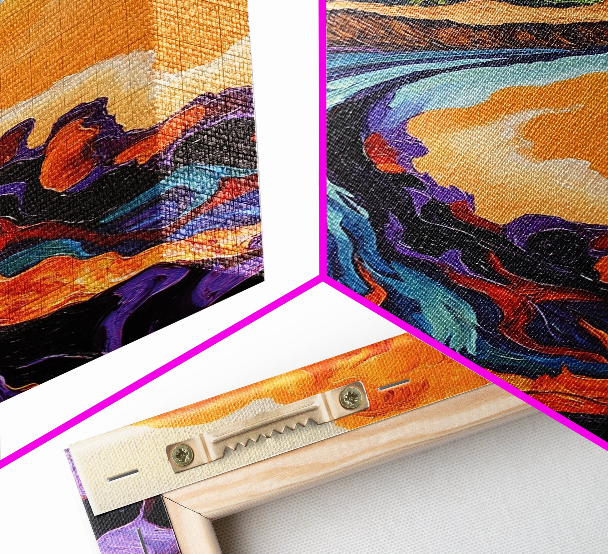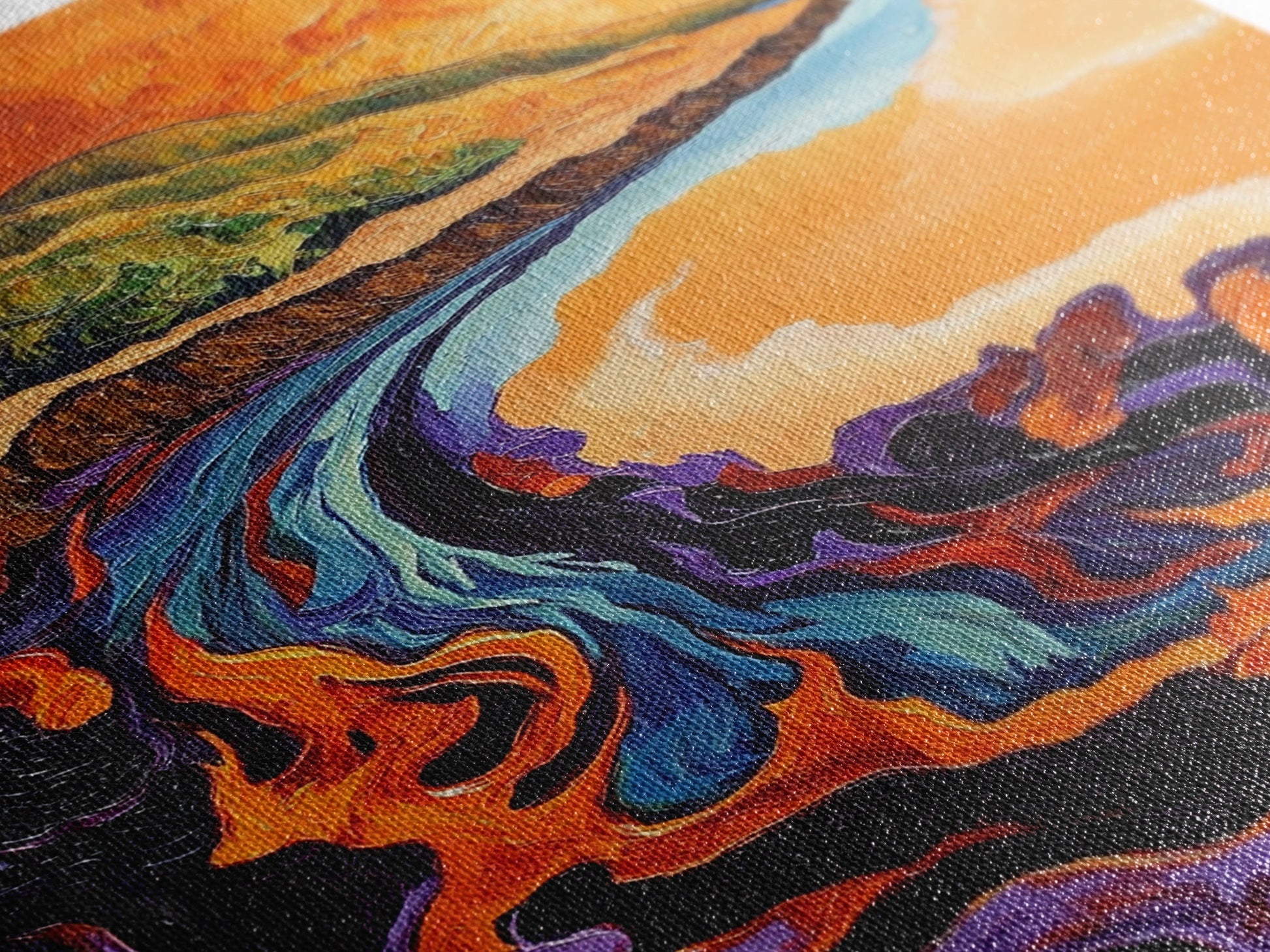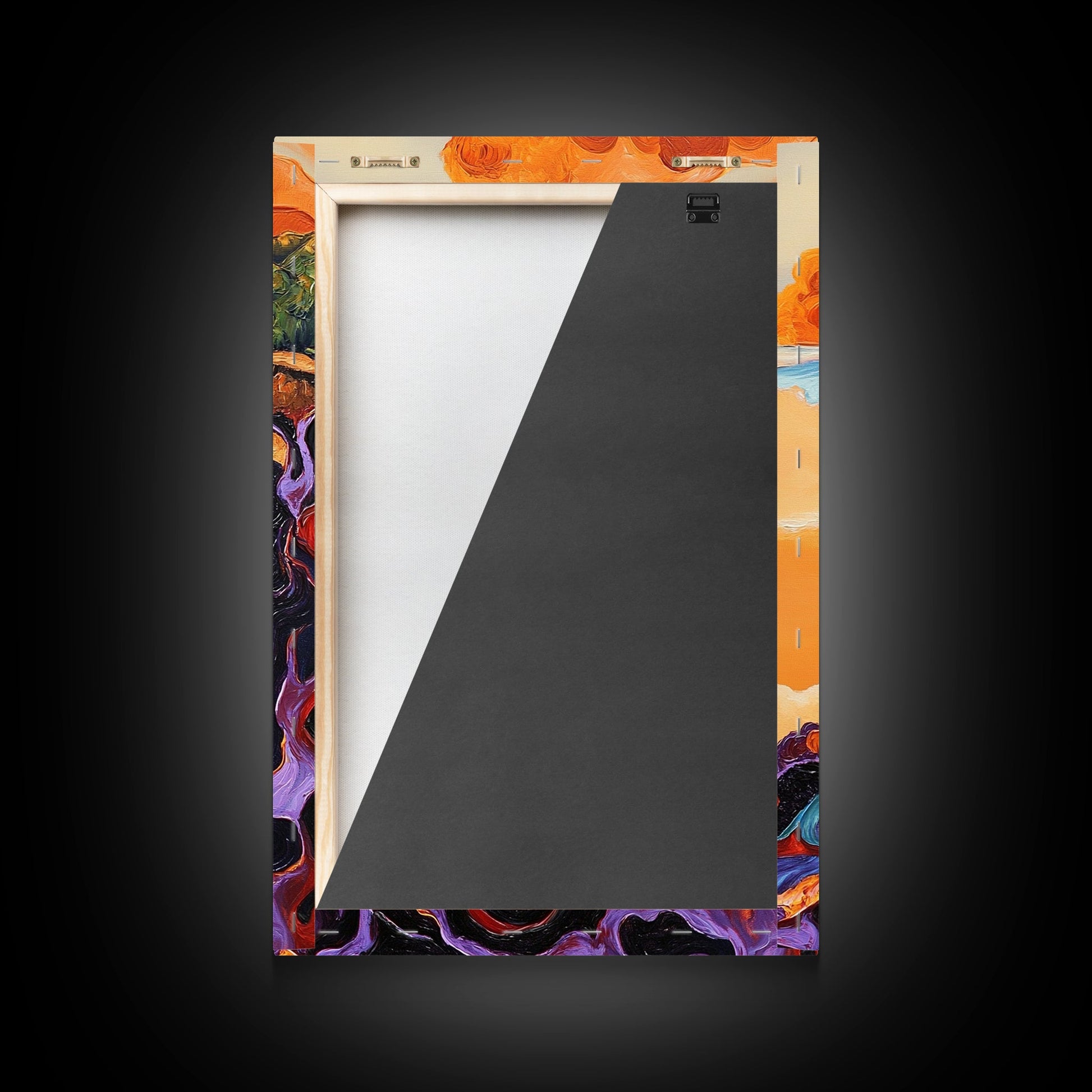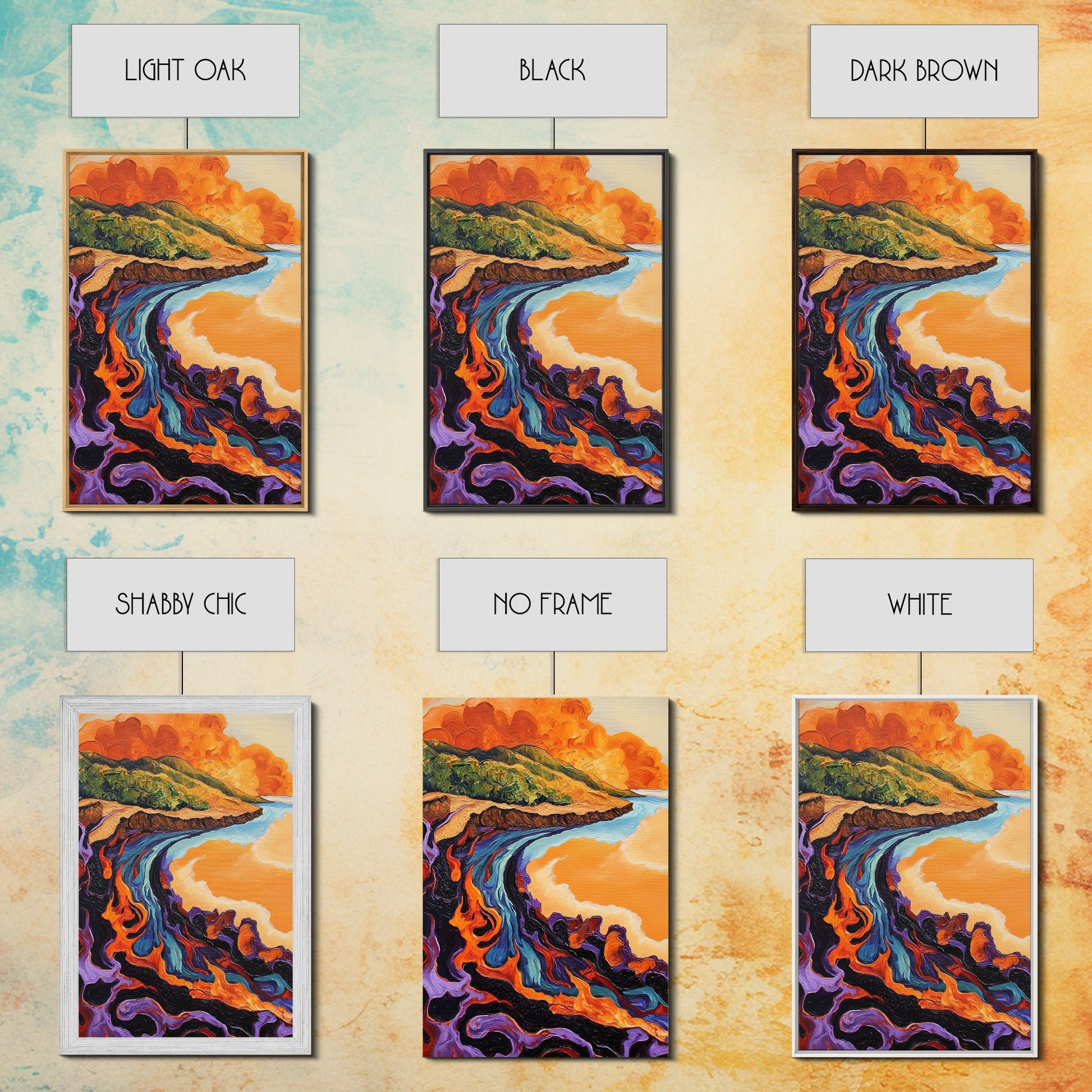 Lava Coastline, Molten Waves, Abstract Nature, Volcanic Scene, Framed Canvas Print, Fall Wall Art, Moody Decor, Earthy Abstract Art