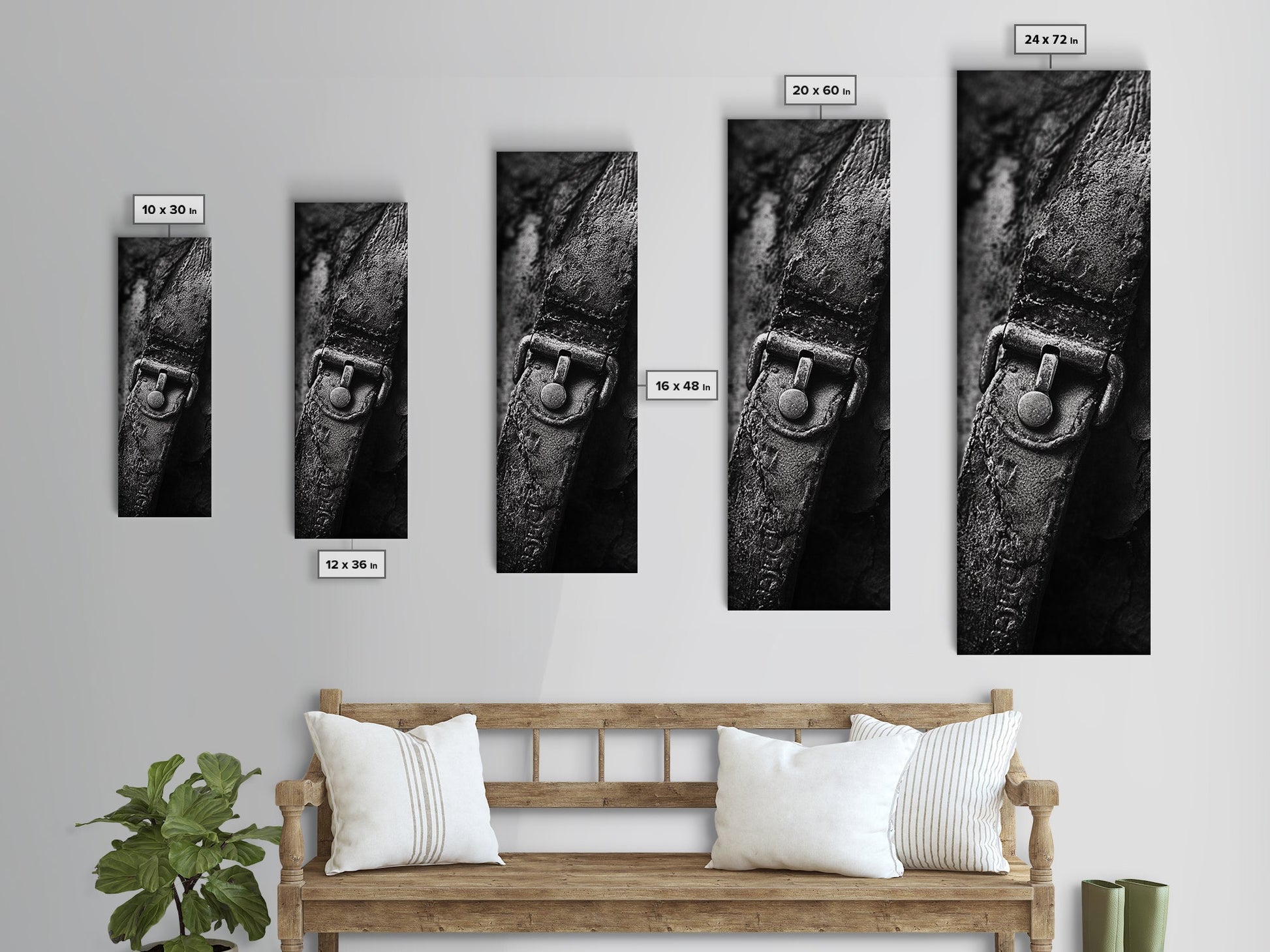 Leather Strap, Worn Texture, Rustic Detail, Framed Canvas Print, Industrial Wall Decor, Masculine Style, Close-Up Texture Art