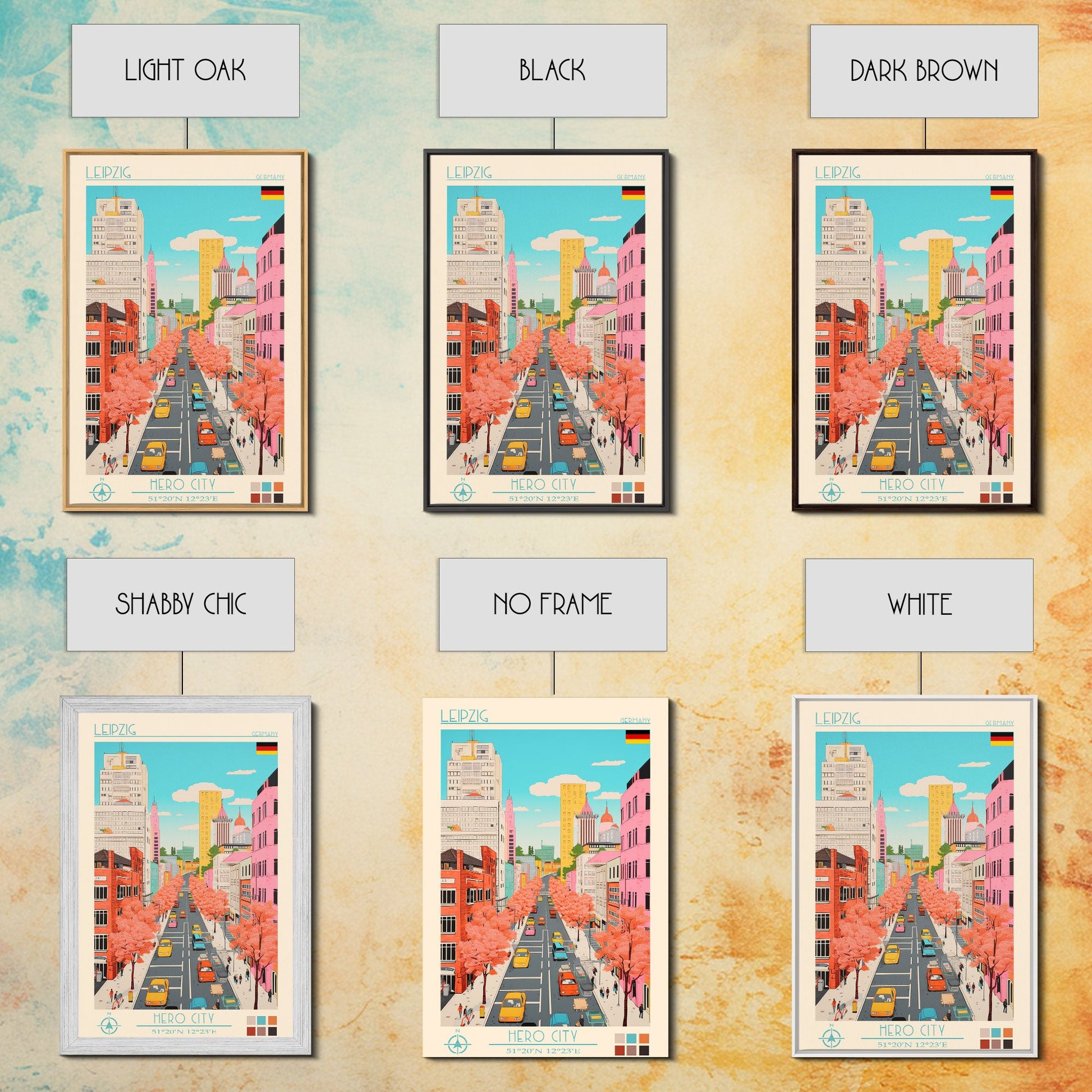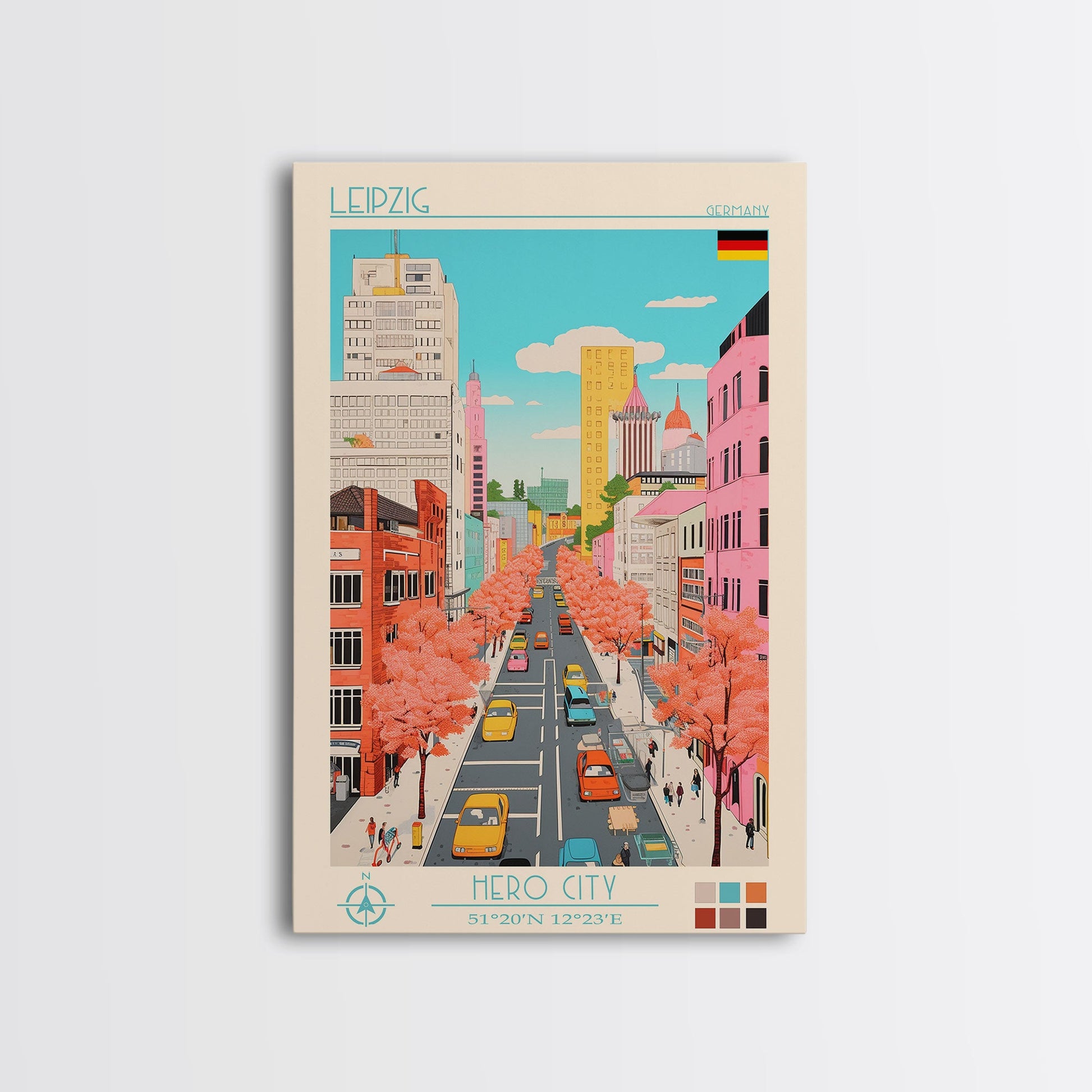 Leipzig Germany Travel Poster Framed Canvas Print, Midcentury Modern Art, Pop Art Wall Decor, Scenic Living Room Art, Bedroom Gift
