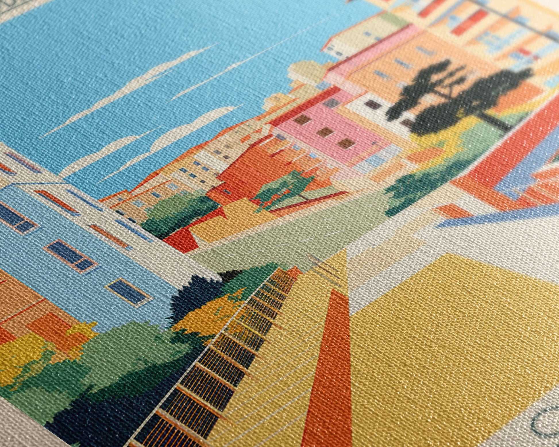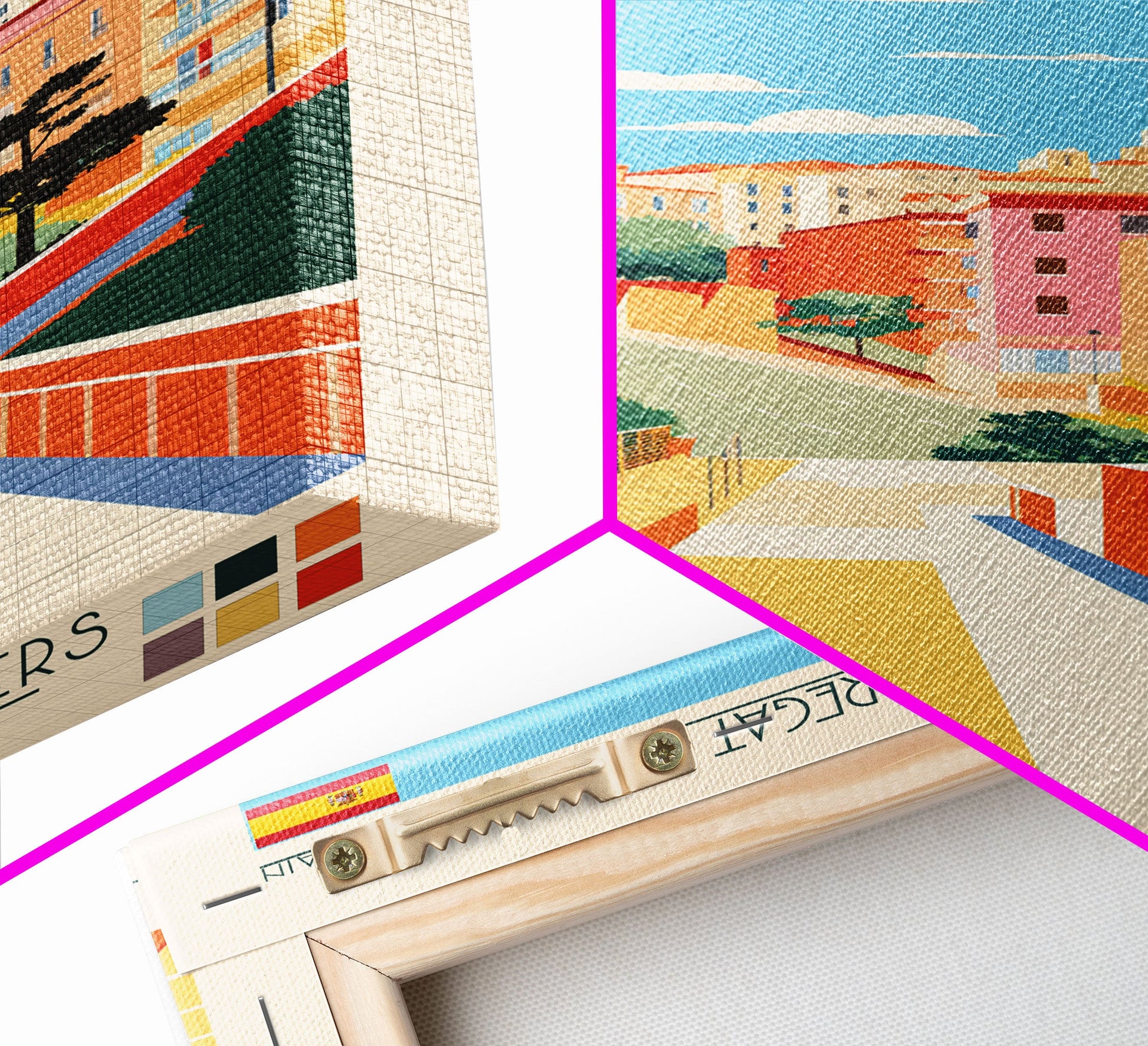 L'Hospitalet de Llobregat Spain Travel Poster Framed Canvas Print, Midcentury Modern Art, Pop Art Wall Decor, Home Decor, Vacation Gift, Office Art