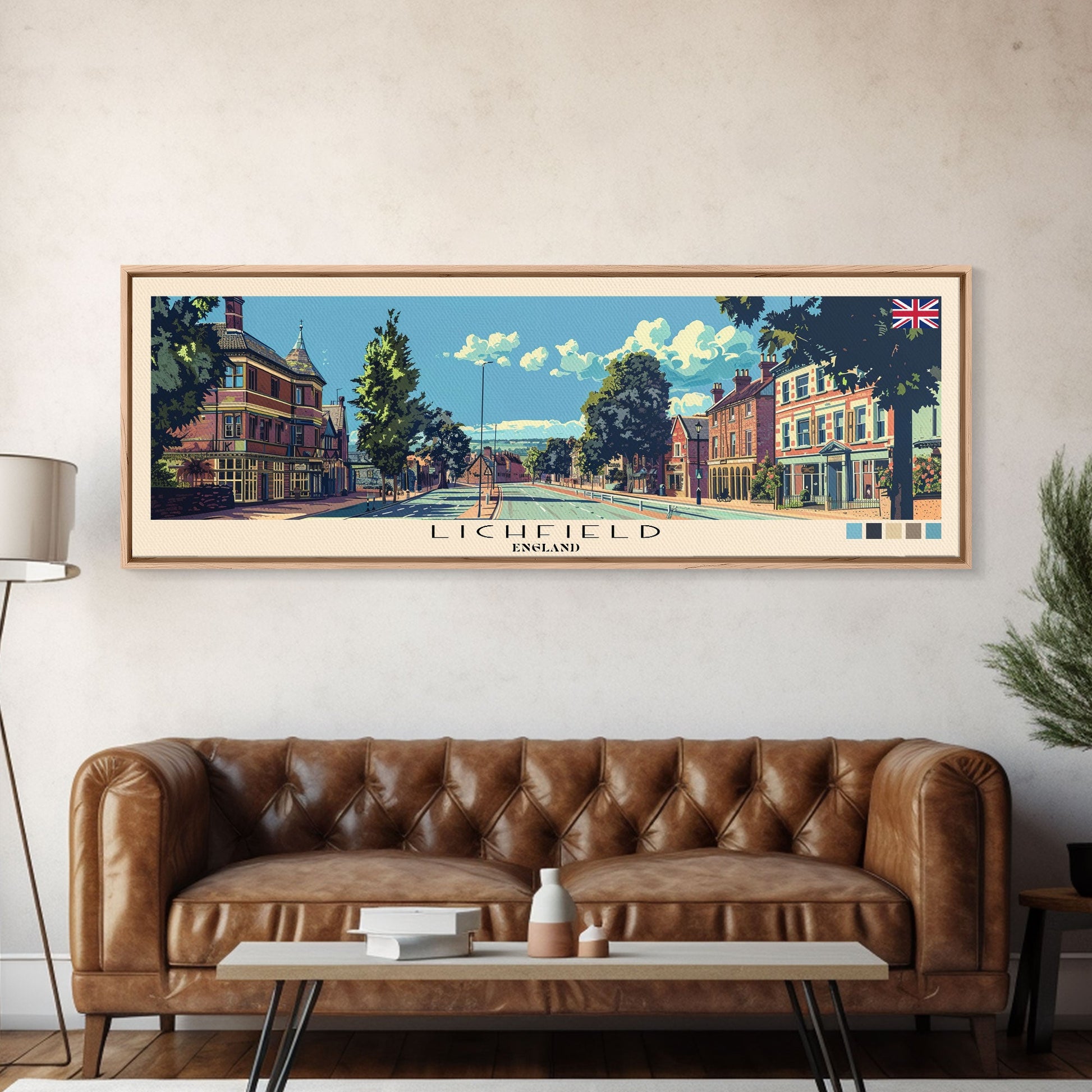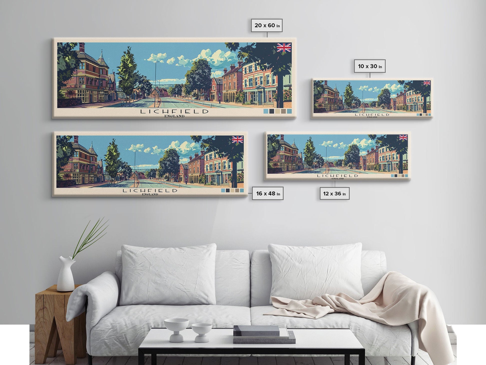 Lichfield, England Panoramic Canvas Print, Lichfield, England Painting, England Art, Lichfield Travel Poster, Travel Art, Housewarming Gift