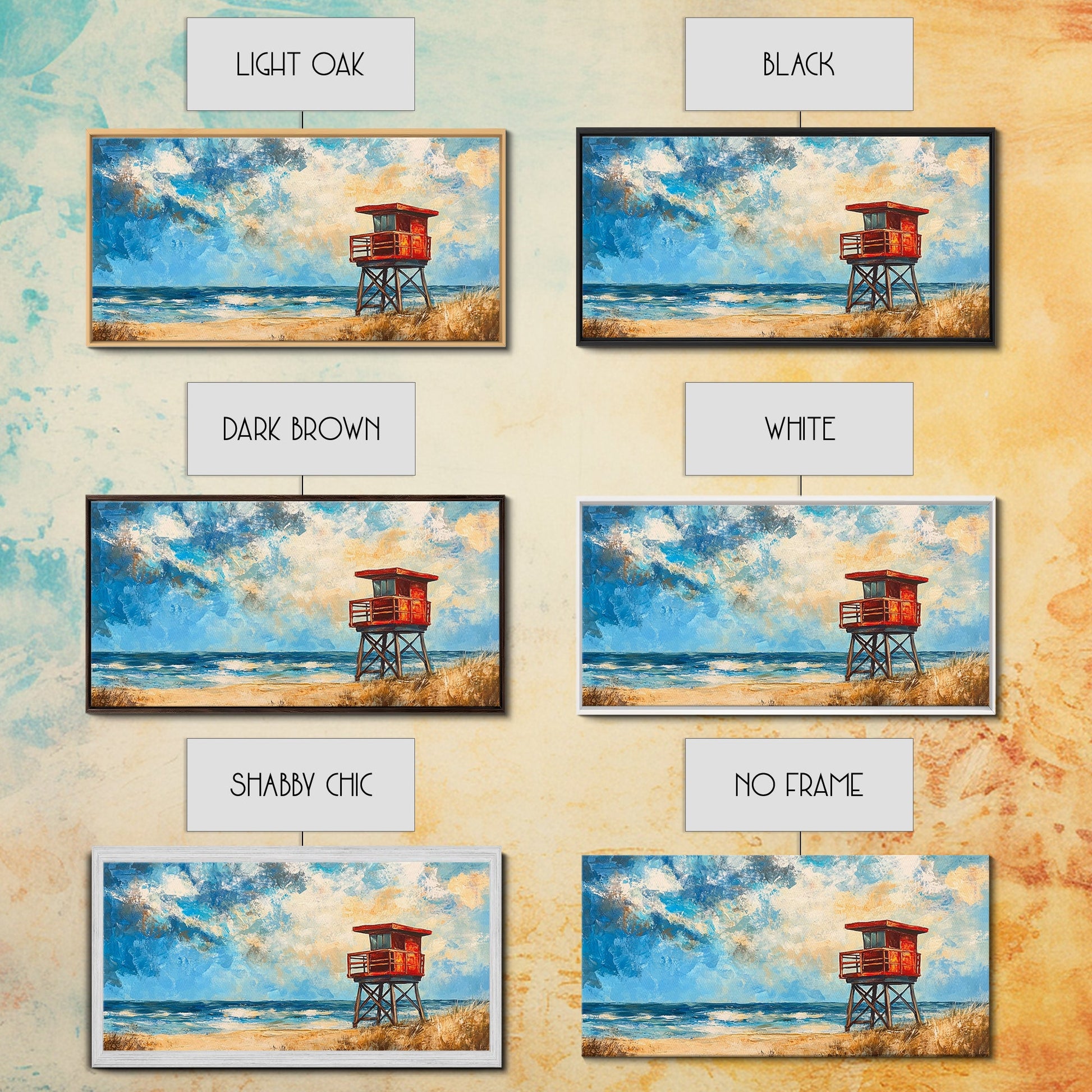 Lifeguard Tower, coastal landscape art, beach painting, seascape painting, nautical wall art, canvas print, horizontal wall art
