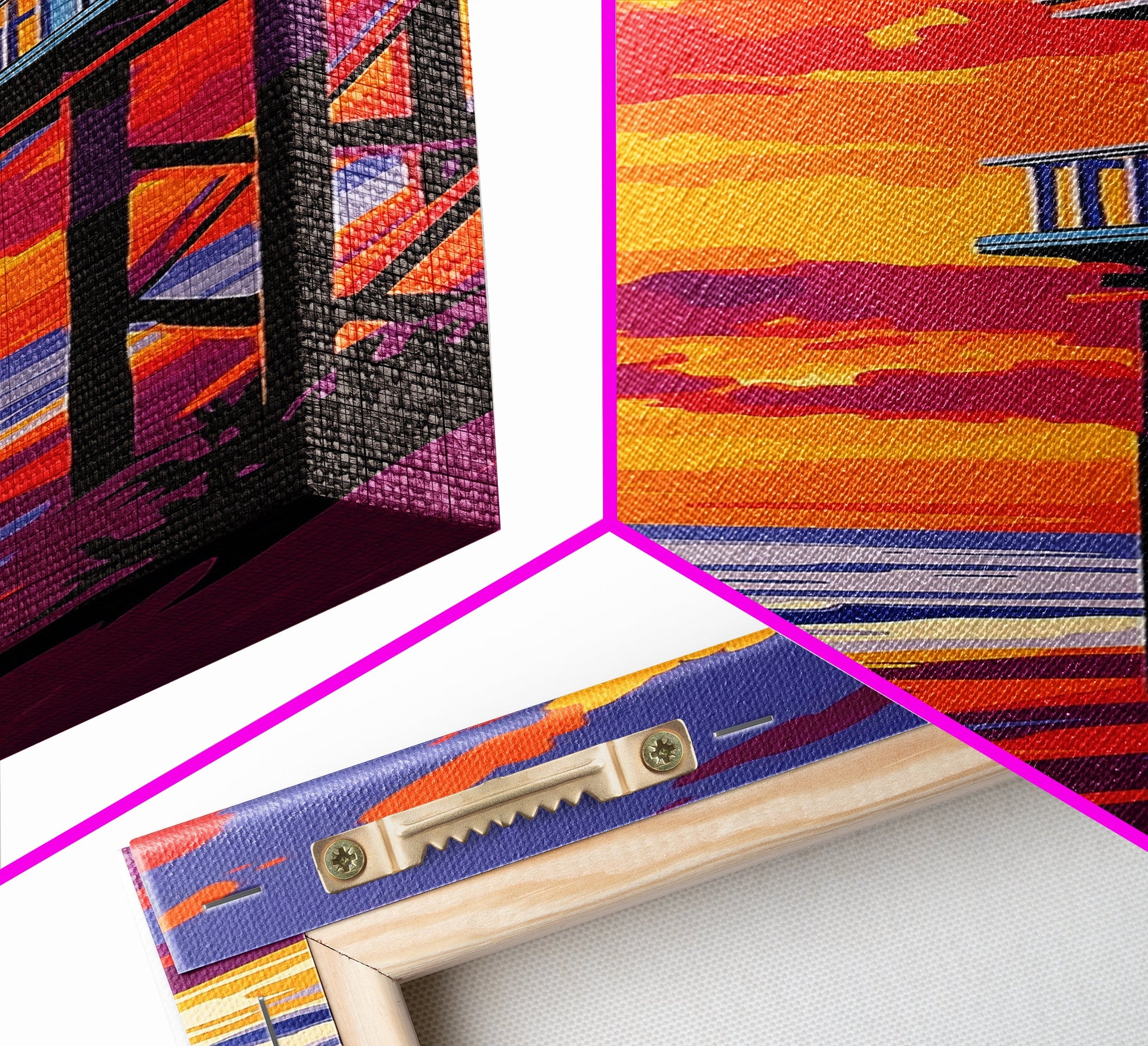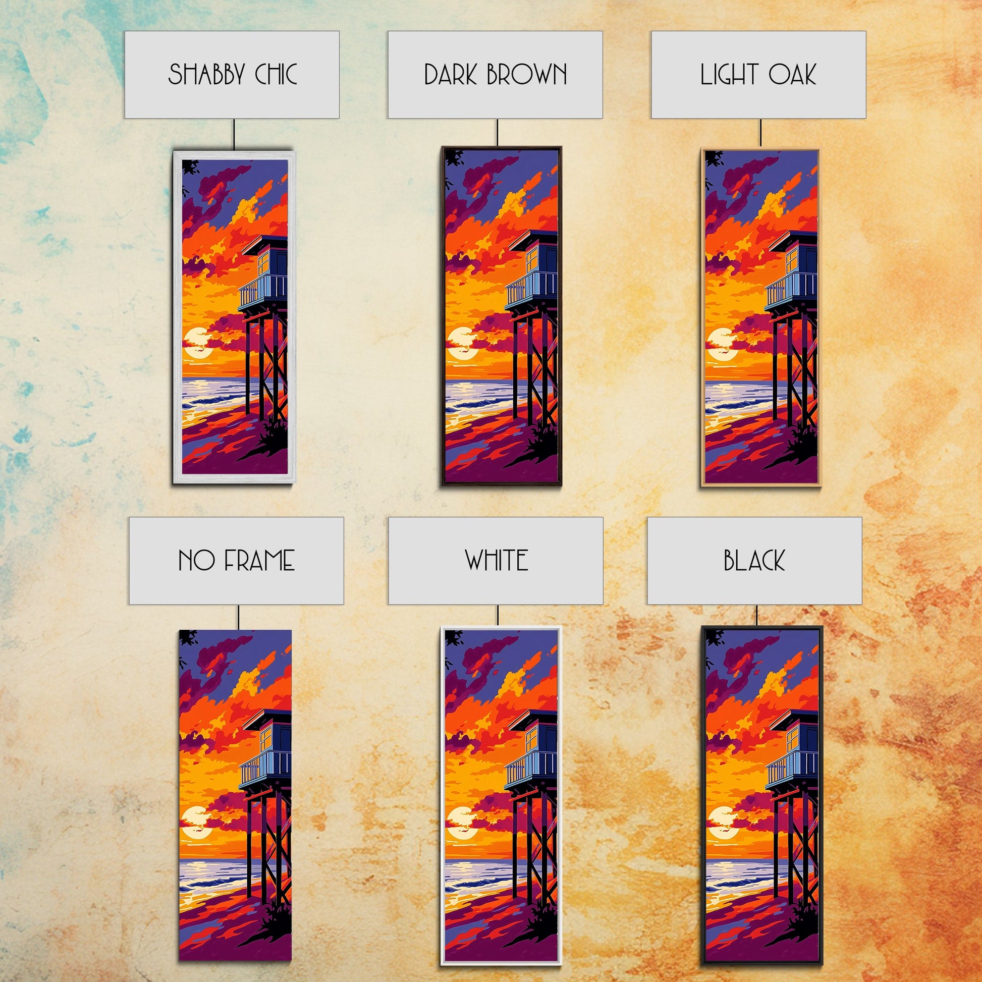 Lifeguard Tower, Ocean Sunset, Beach House Art, Framed Canvas Print, Coastal Wall Decor, Vibrant Seascape Painting, Nautical Decor