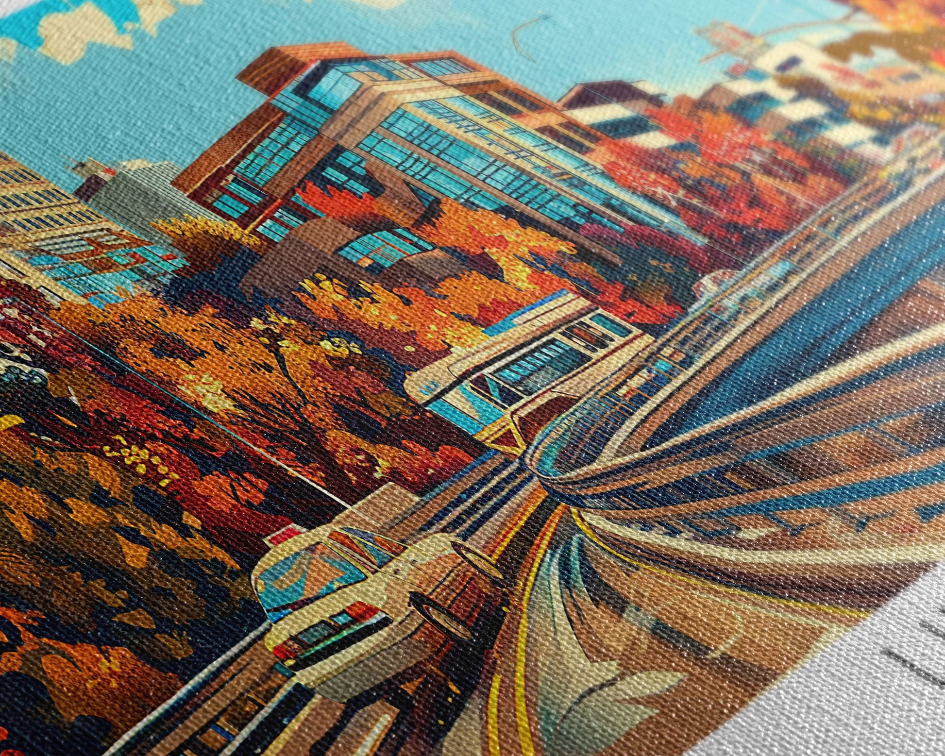 Lincoln Nebraska Panoramic Wall Art, Mid Century Modern Framed Canvas Print, Retro Pop Art Travel Poster, Home Decor