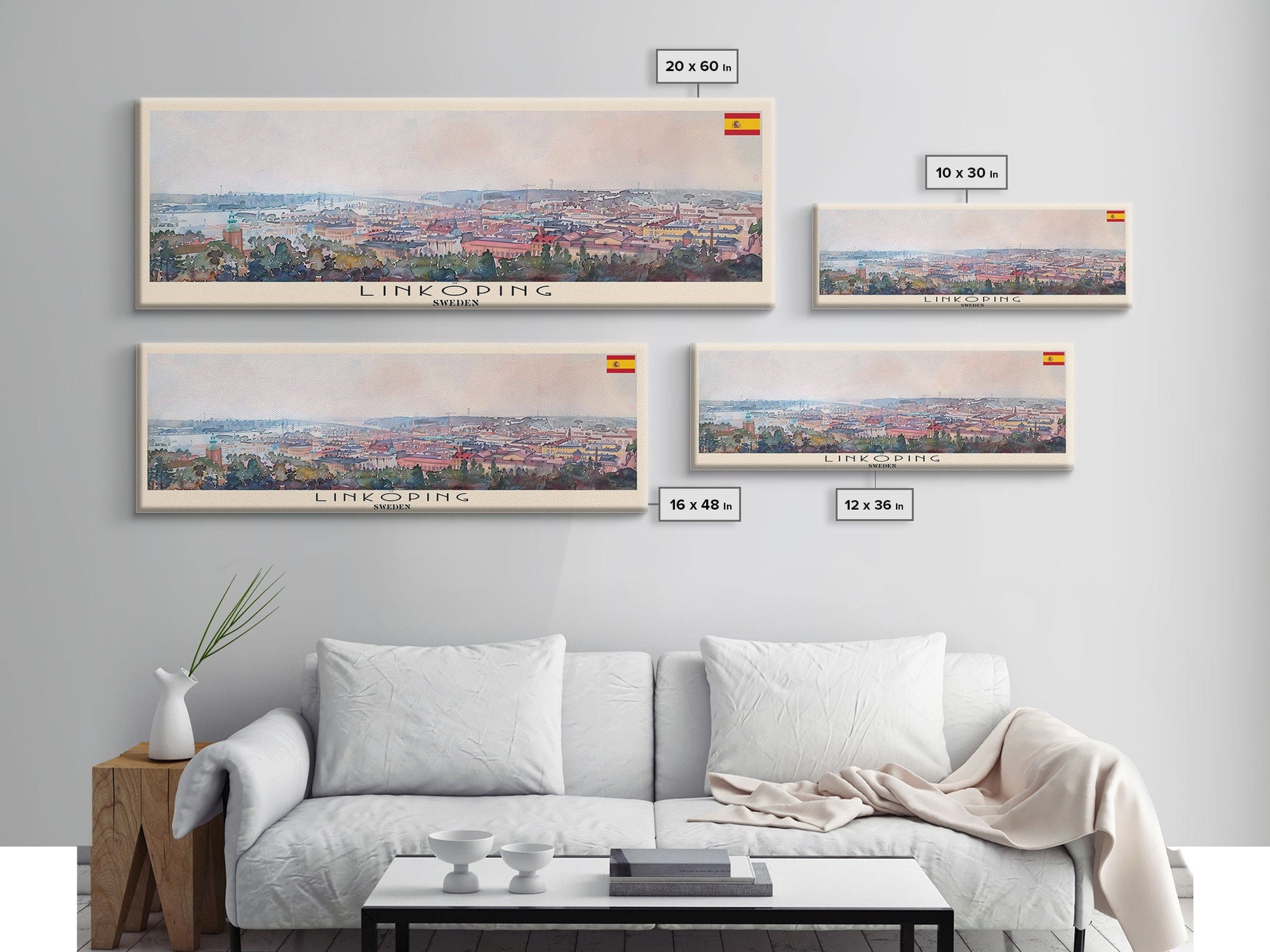 Linkoping Sweden Travel Art, City Art, Framed Canvas Print or Metal Wall Art, Europe Travel Poster, Panoramic Wall Art, Extra Wide Wall Art