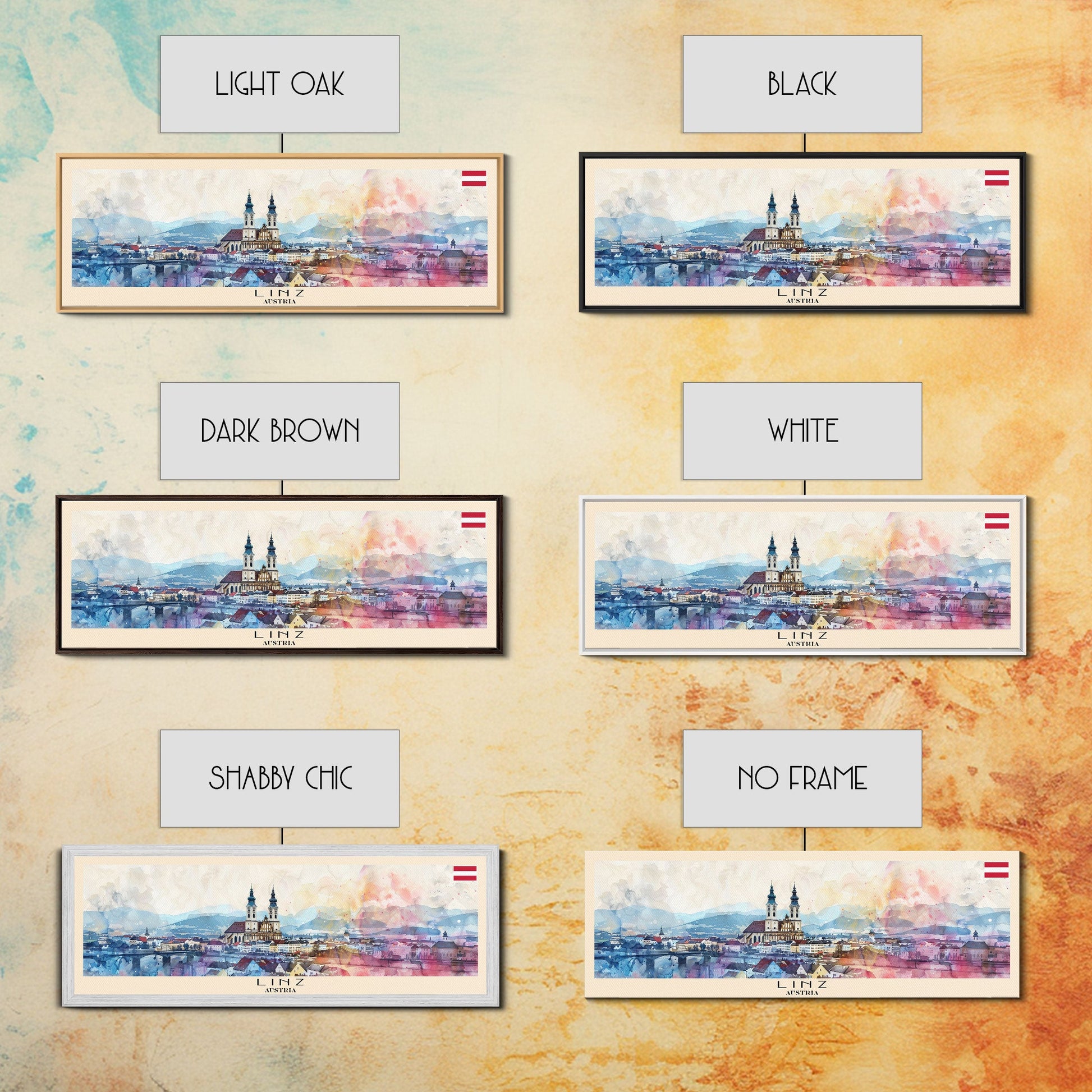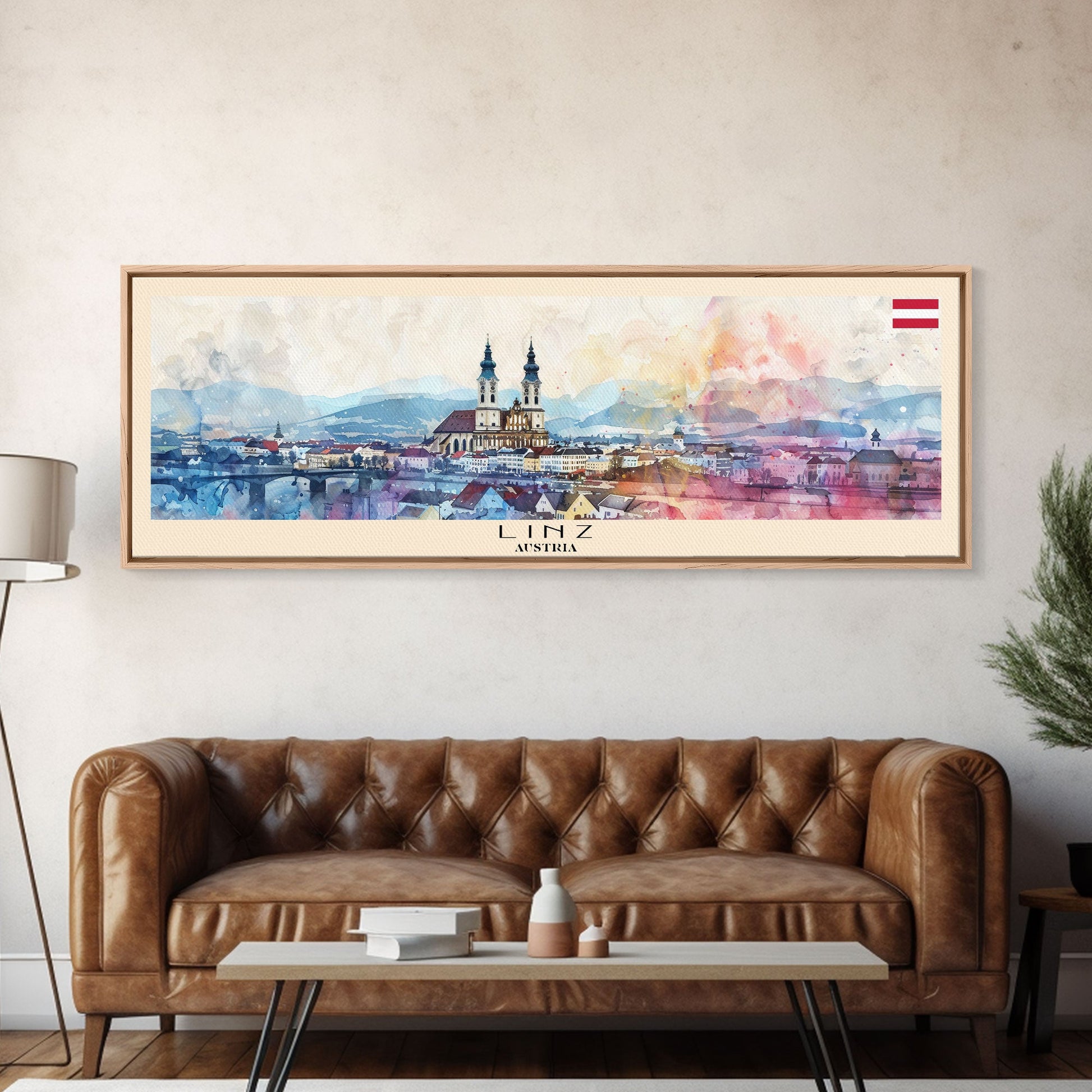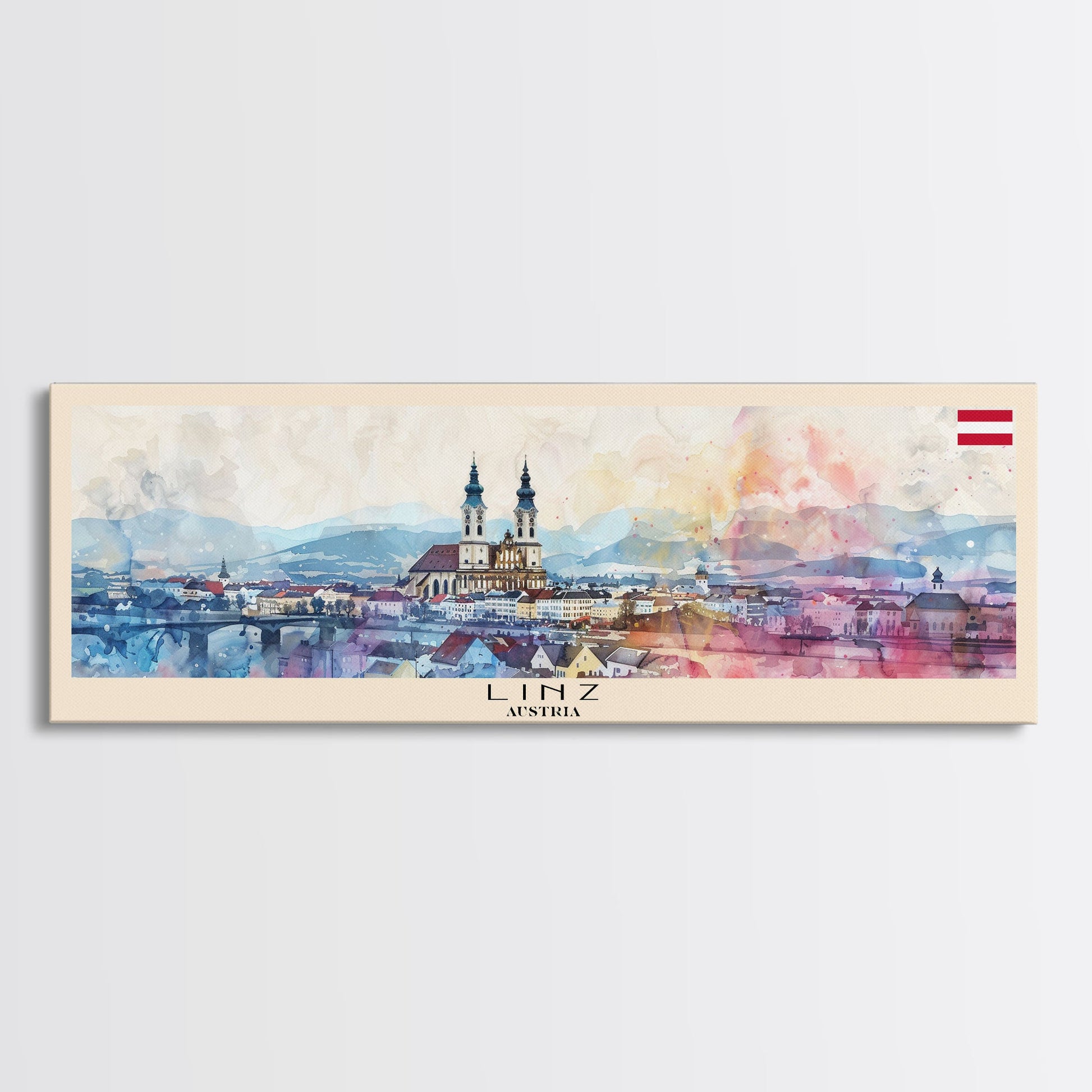Linz Austria Panoramic Travel Poster, Framed Canvas Print or Metal Wall Art, Travel Art, Home Decor, Panoramic Painting, Midcentury Art