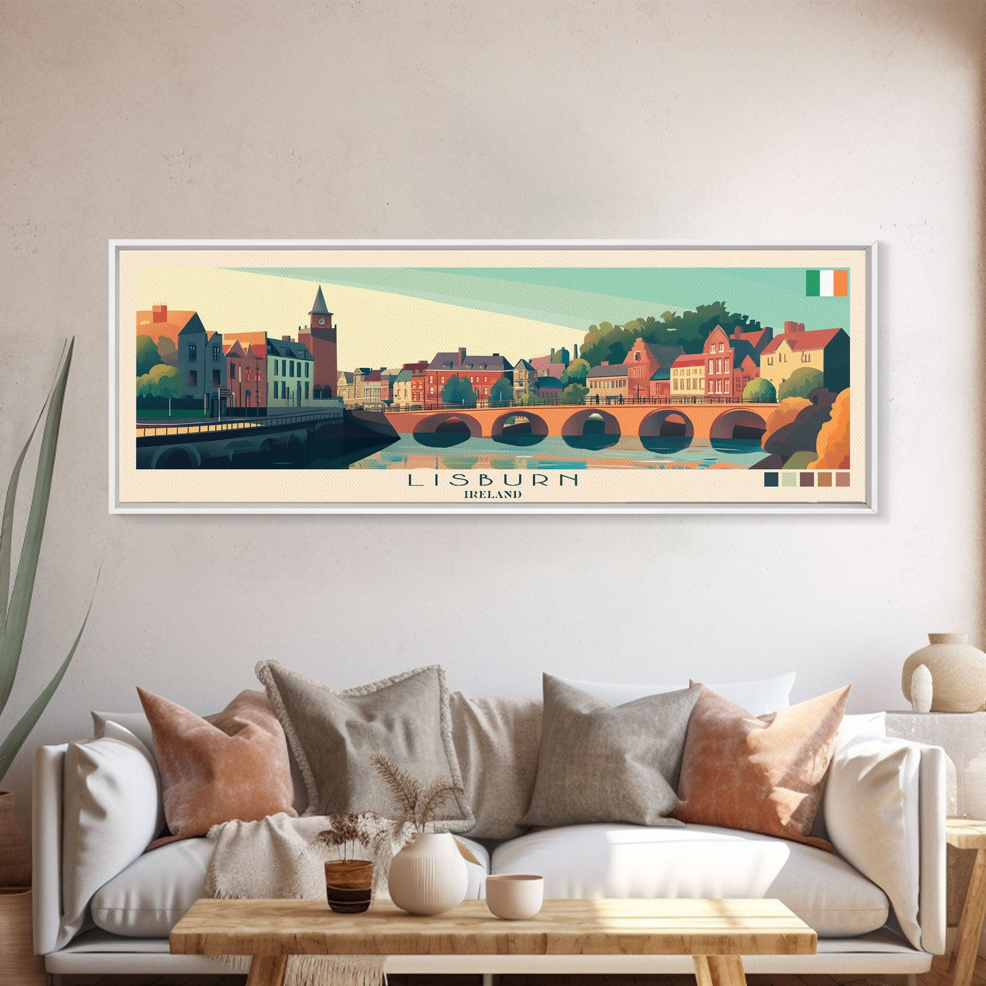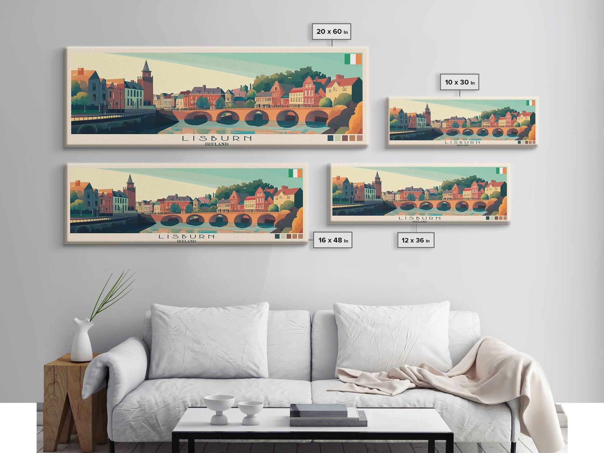 Lisburn, Ireland Panoramic Travel Poster Canvas Print, Lisburn, Ireland Painting, Ireland Art, Lisburn Panoramic Travel Art, Travel Painting